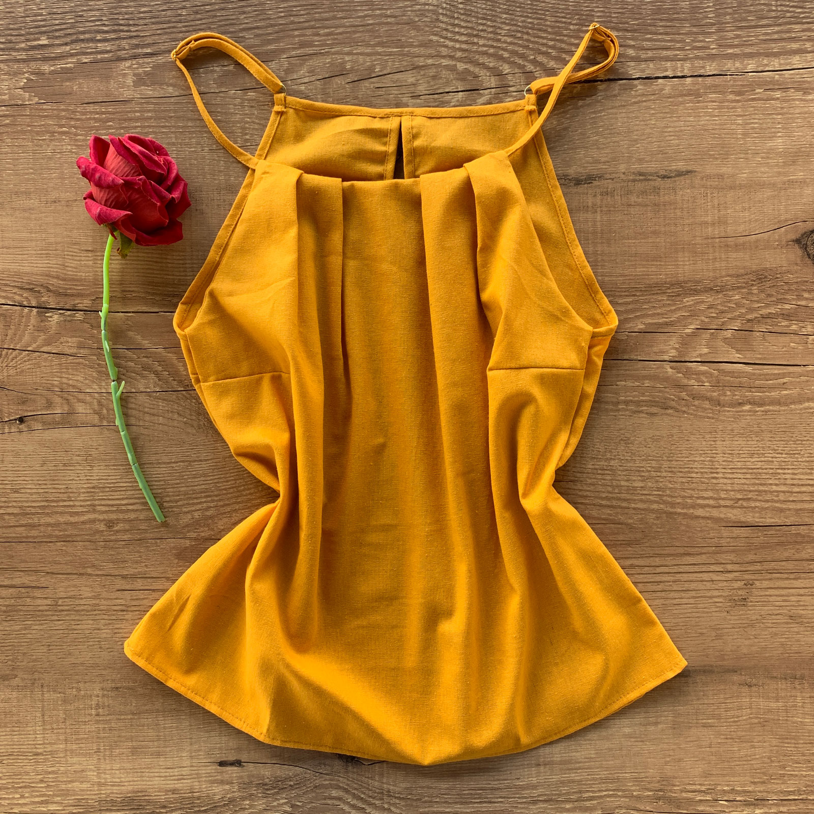 O Conjunto Linho com Cinto Regata e Short Mostarda é estiloso, e uma tendência que definitivamente não sai de moda nem mesmo em dias de mudanças climáticas moderadas. O linho é um tecido que possui aspecto rústico e dispõe de um estilo versátil, carregando sofisticação e conforto. Regata possui alças finas reguláveis que garantem sustentação. O detalhe de abertura posterior em formato de gota melhora o design da peça bem como as pregas frontais na parte de cima. Short contém abertura com fechamento em zíper lateral funcional que facilita o vestir. O Cós alto com passantes auxilia a passagem do cinto encapado com fivela que a acompanha. Contém bolsos em faca que caracterizam o utilitarismo. O detalhe de pregas e as barras dobradas incrementam o design e estrutura!