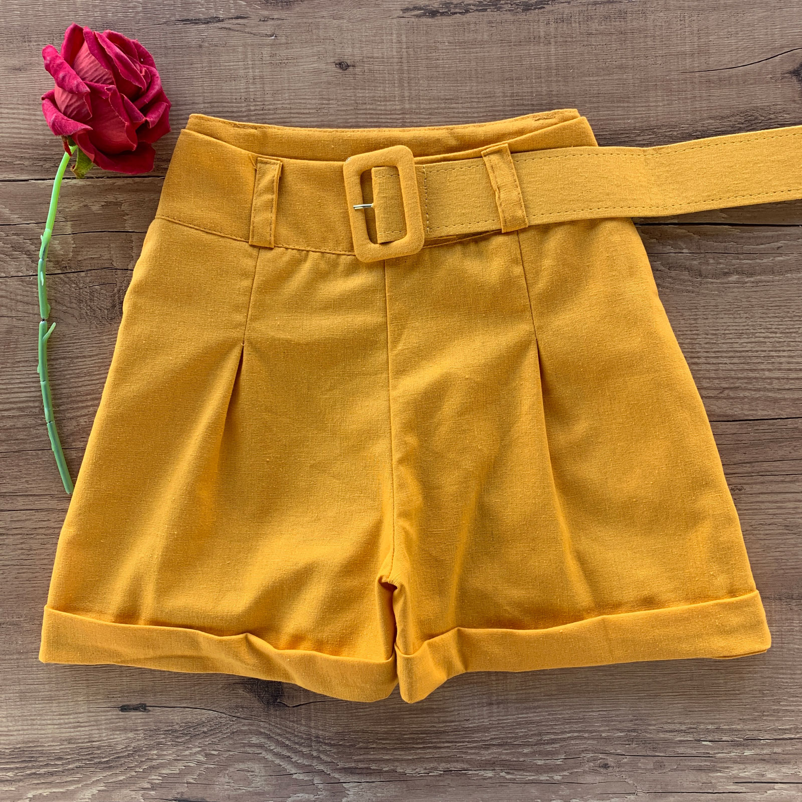 CONJUNTO LINHO COM CINTO REGATA E SHORT MOSTARDA