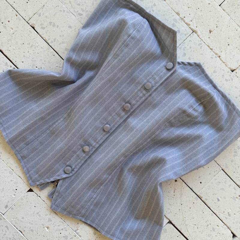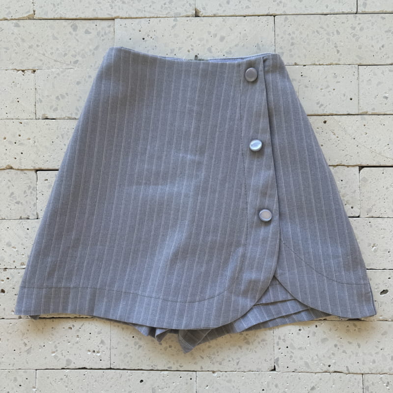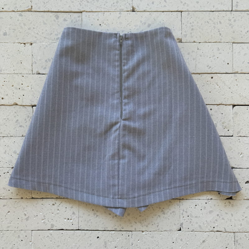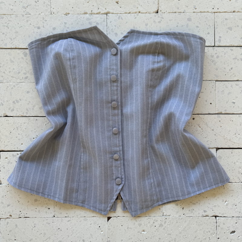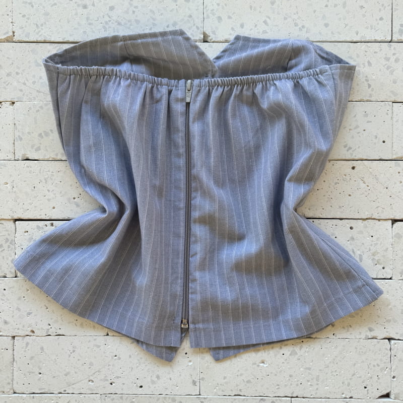 Escolha seu Conjunto Linho Listrado Tomara que Caia e Short Saia Cinza com nosso PROVADOR VIRTUAL