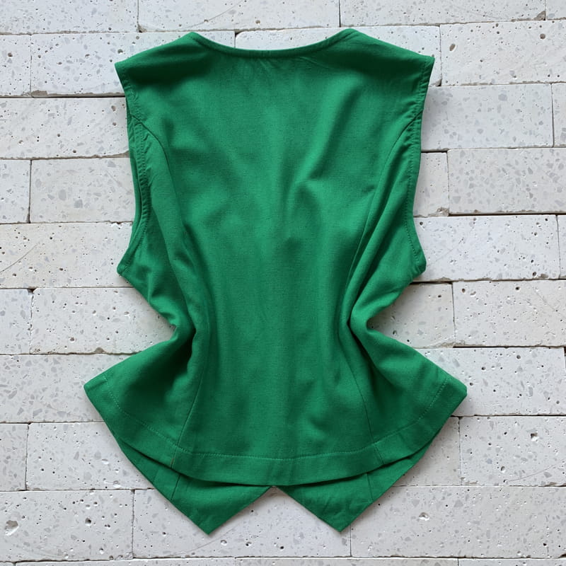 - Colete apresenta decote V;