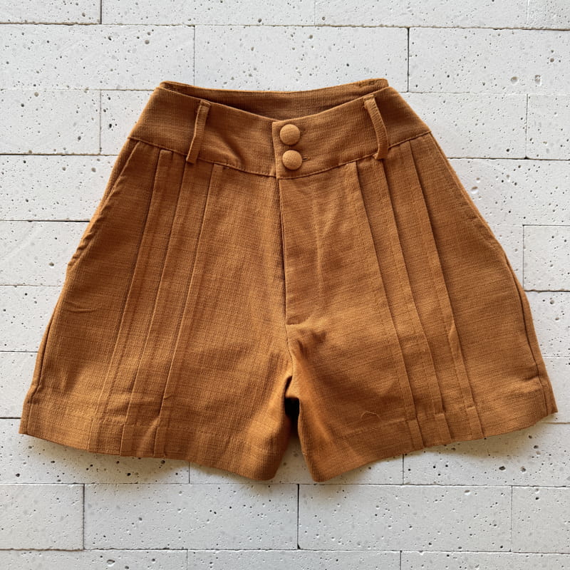 CONJUNTO LINHO REGATA ALÇA LARGA E SHORT PREGAS CARAMELO – Elegância e leveza no visual