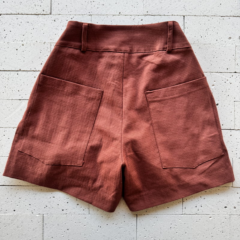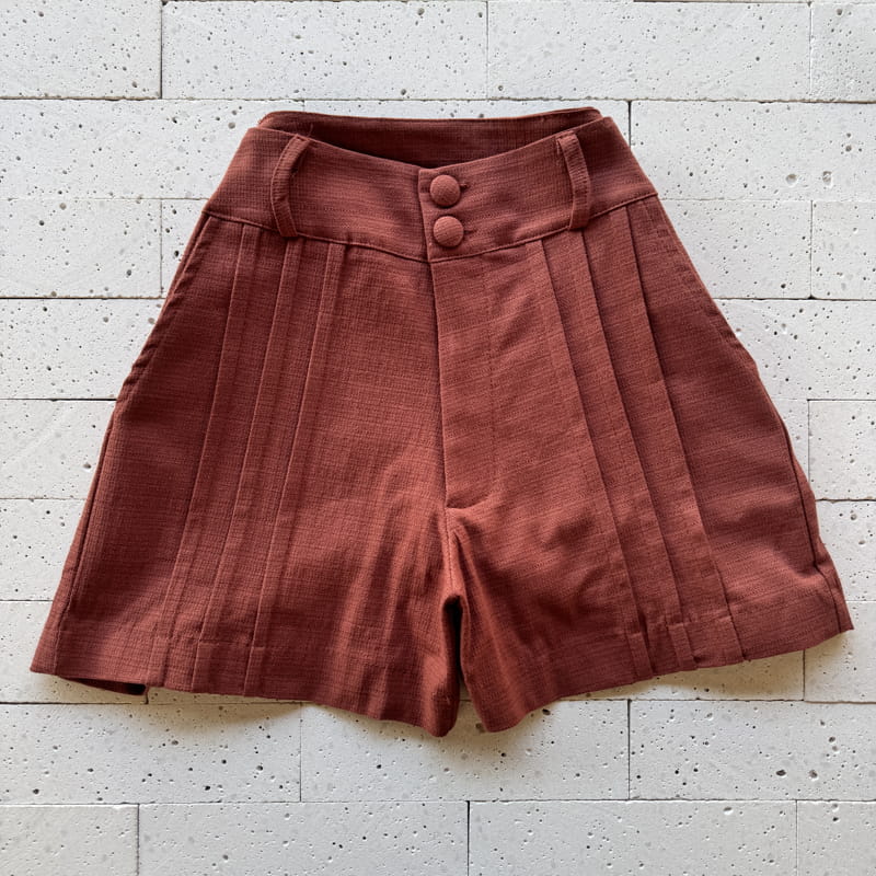 CONJUNTO LINHO REGATA ALÇA LARGA E SHORT PREGAS MARROM – Elegância Casual com Caimento Impecável