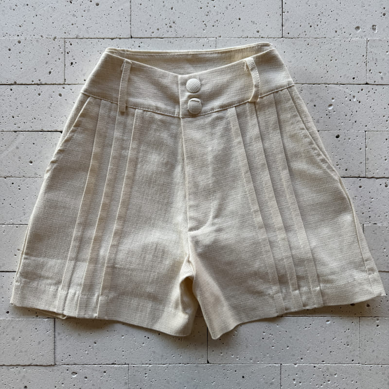 CONJUNTO LINHO REGATA ALÇA LARGA E SHORT PREGAS OFF – Elegância neutra com modelagem impecável