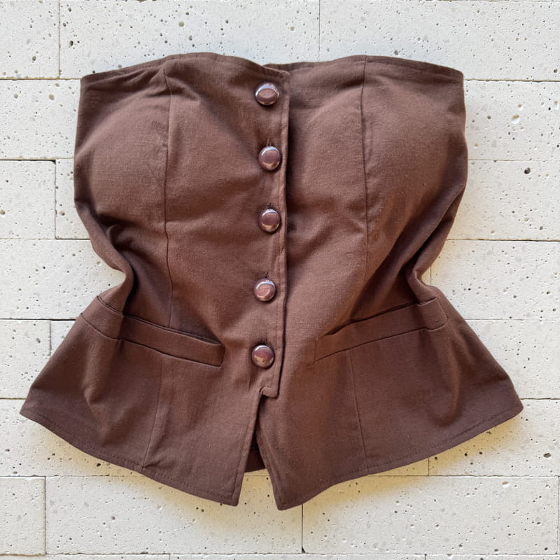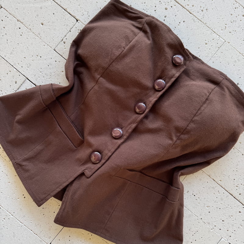 • Top tomara que caia estruturado, com cinco botões forrados frontais