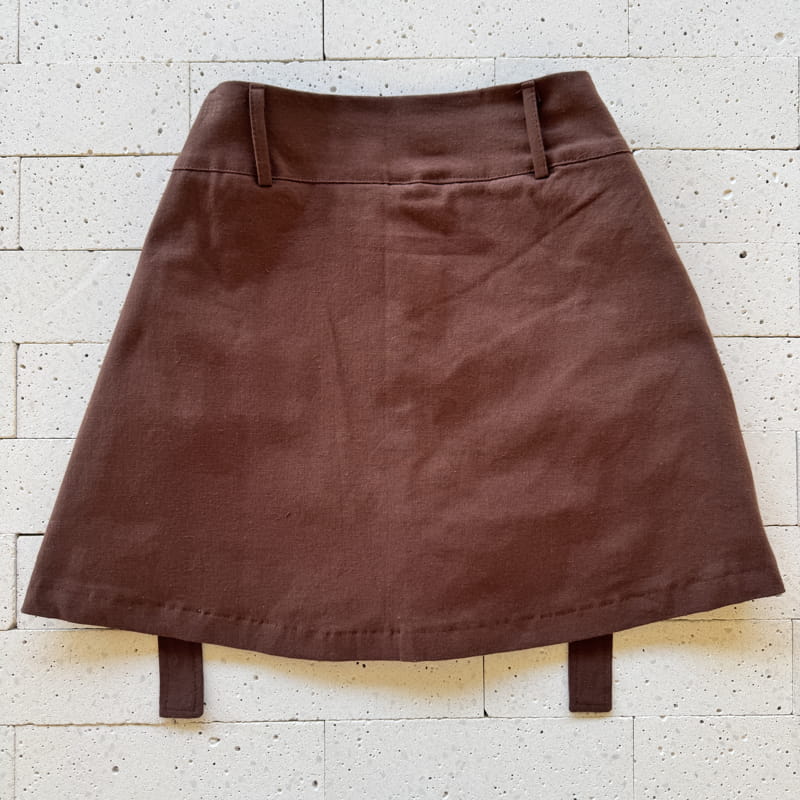 • Short saia cargo com bolsos frontais, lapelas, argolas metálicas e tiras utilitárias removíveis