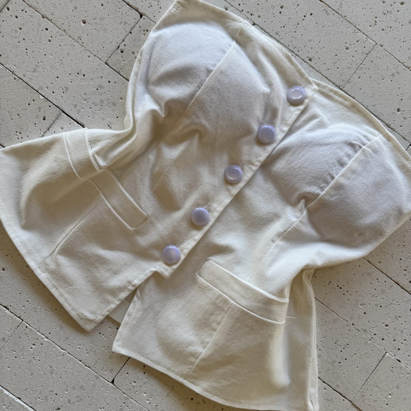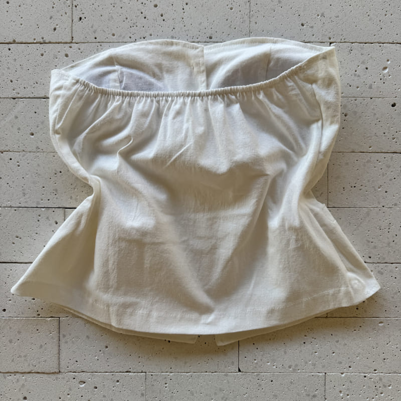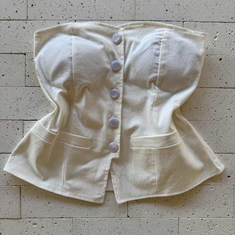 - Top tomara que caia estruturado com botões forrados e barra peplum