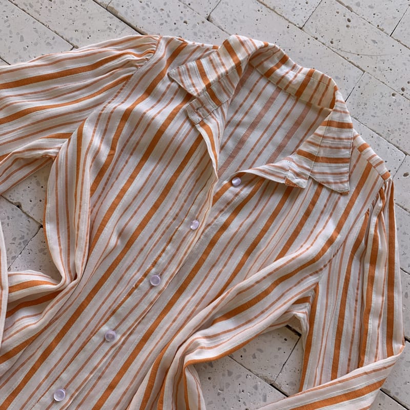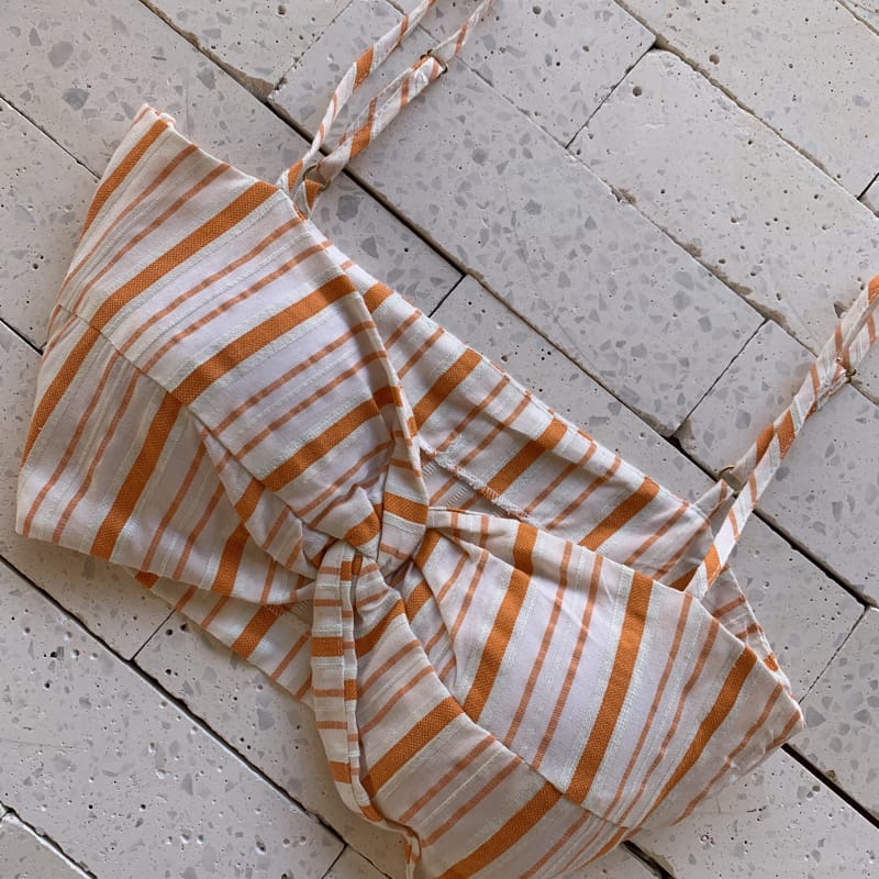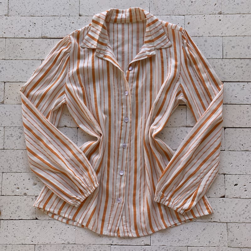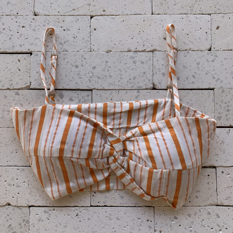 CONJUNTO LISTRADO CAMISA COM TOP NÓZINHO LARANJA