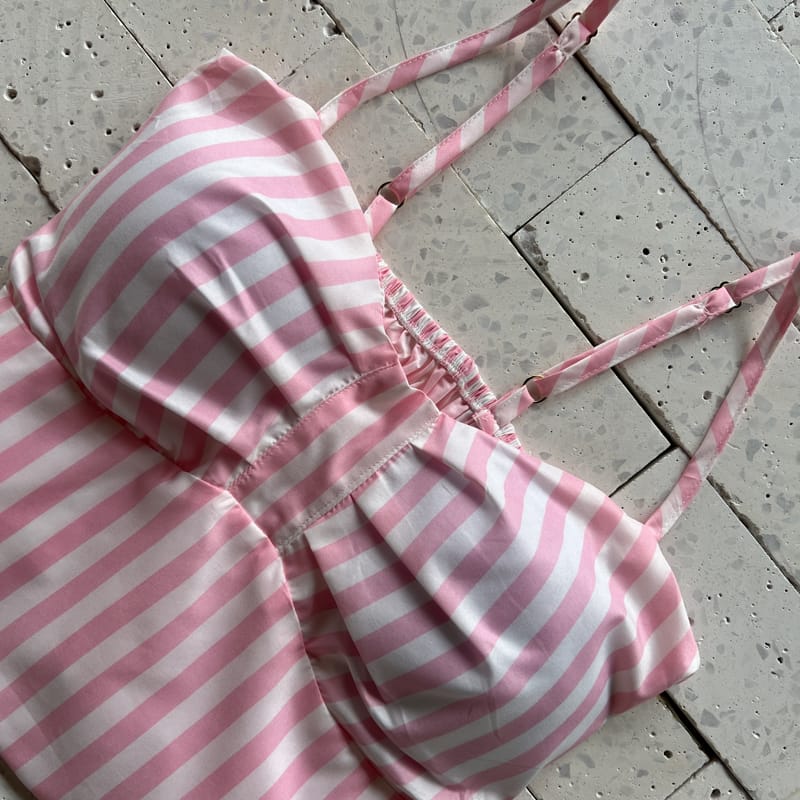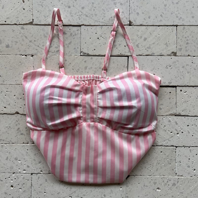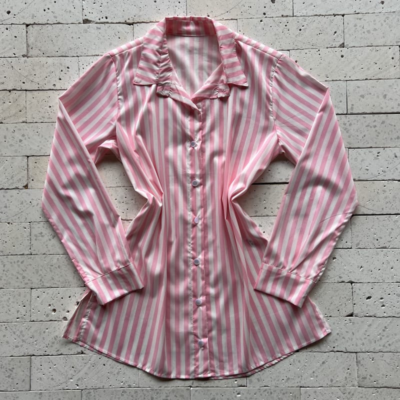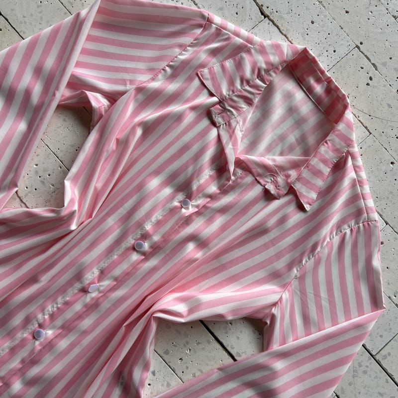 Escolha seu Conjunto Listrado Cropped com Bojo e Camisa Alongada Rosa com nosso PROVADOR VIRTUAL