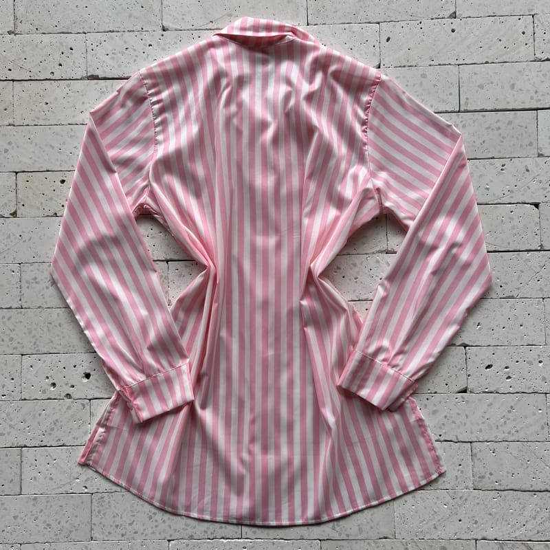 CONJUNTO LISTRADO CROPPED COM BOJO E CAMISA ALONGADA ROSA