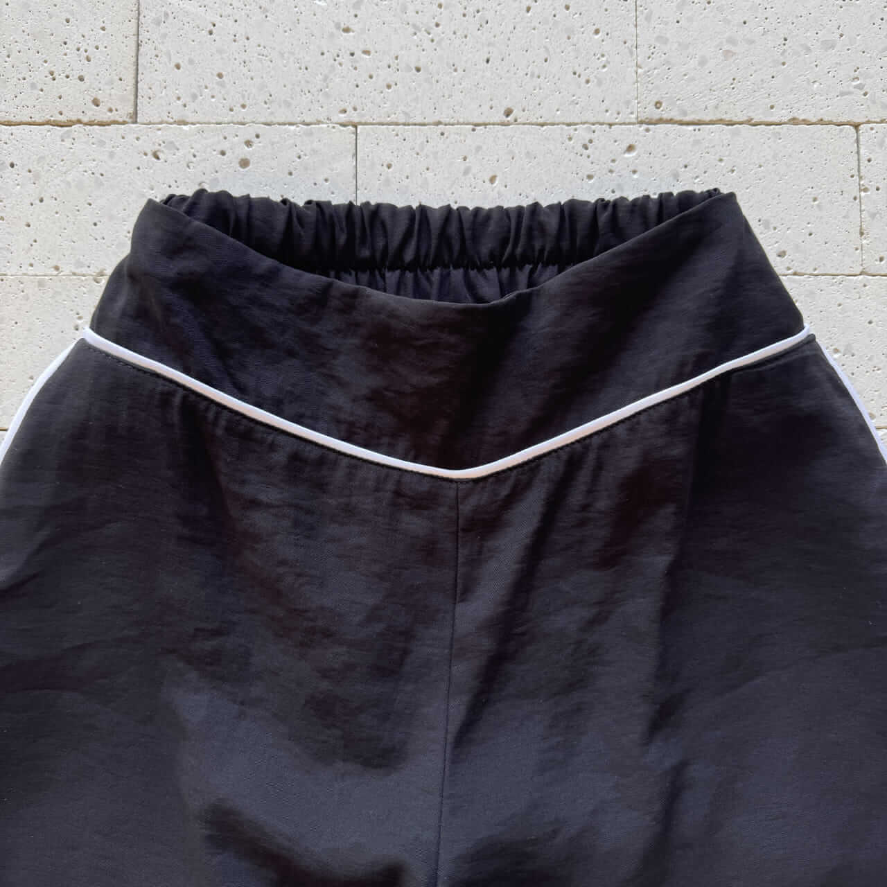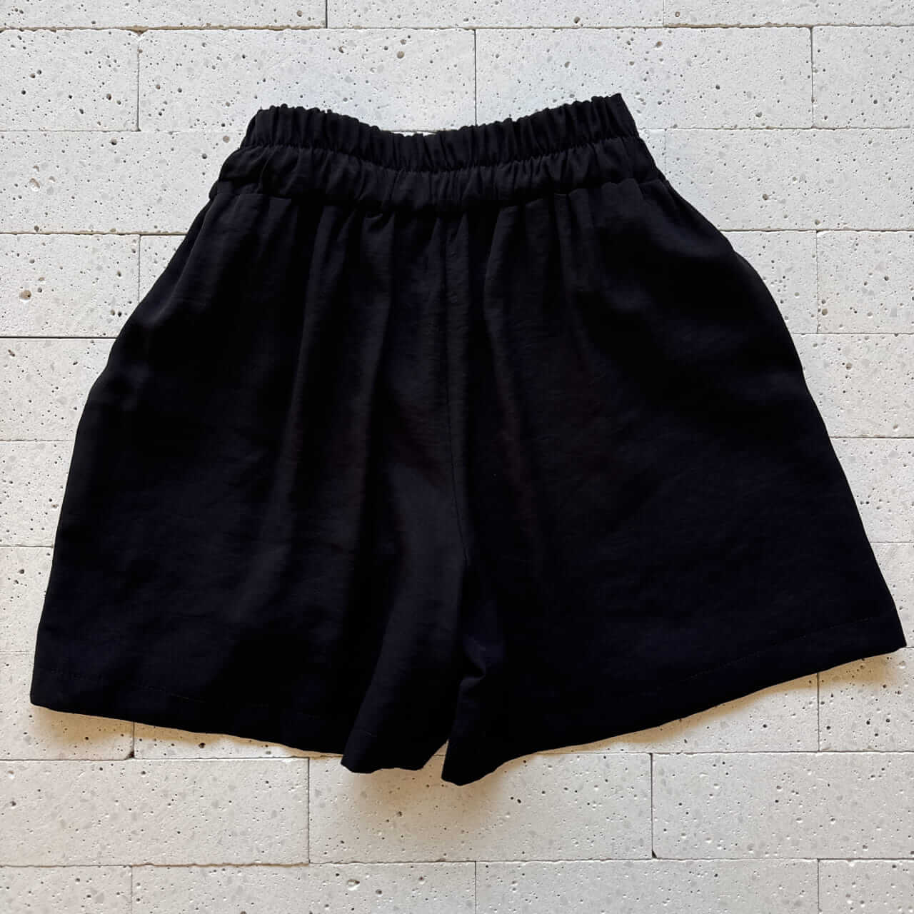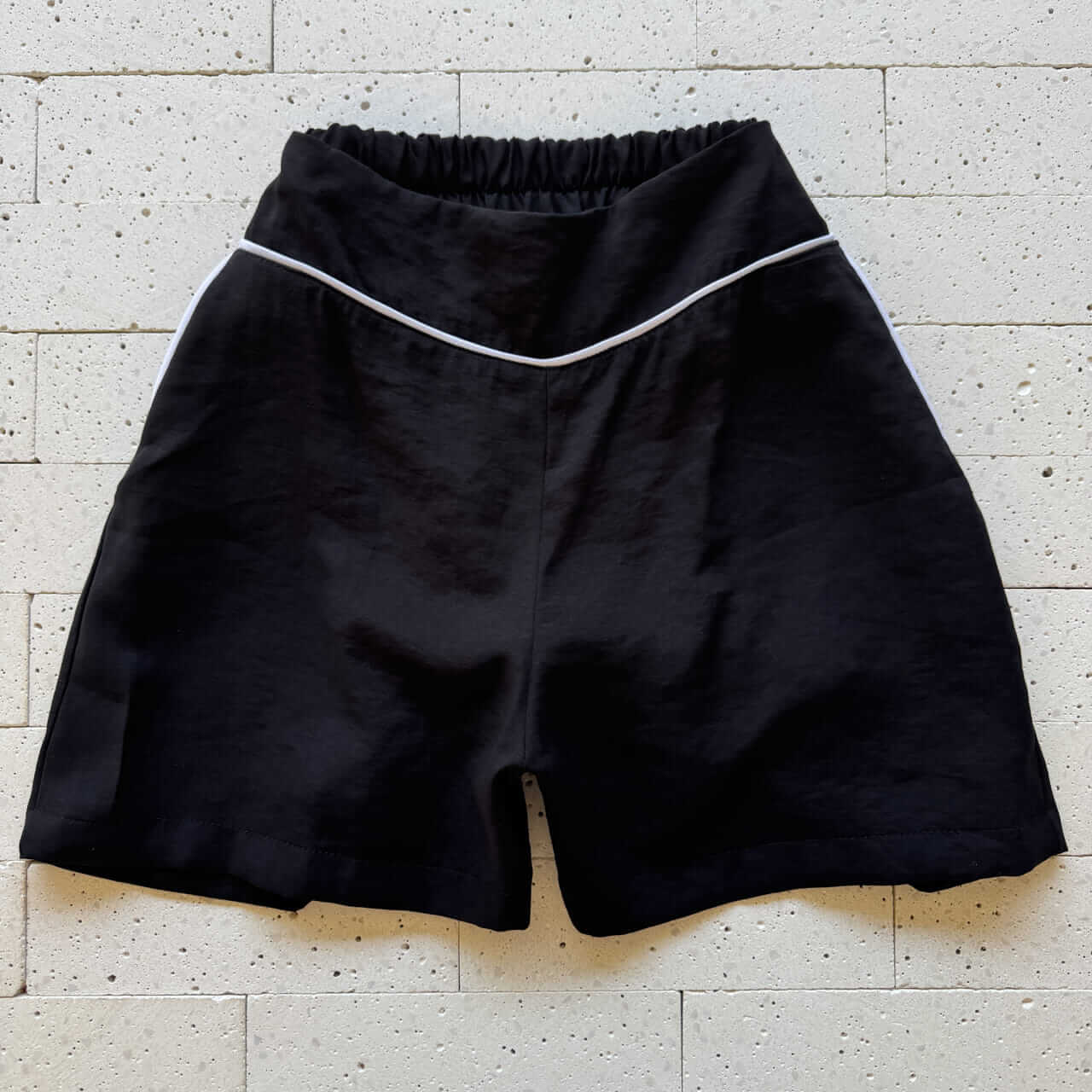 - Short com cós alto, elástico traseiro e detalhe em viés branco