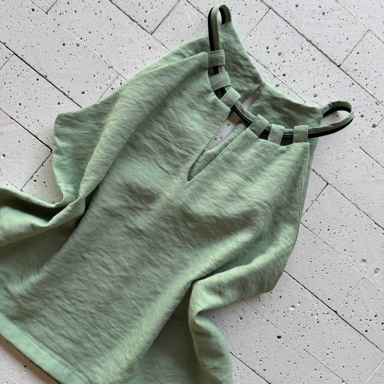 O Conjunto Marrant na cor Verde Oliva traz uma proposta contemporânea com tons sóbrios e detalhes que enriquecem a composição. A blusa possui alças finas, decote frontal vazado com aplicação de tiras trançadas e fechamento nas costas com botão, garantindo charme e elegância ao visual. O short acompanha a proposta com cós em formato V, recorte contrastante no viés e elástico nas costas que oferece conforto ao vestir. É a escolha ideal para quem busca um look elegante, leve e atual para o verão.