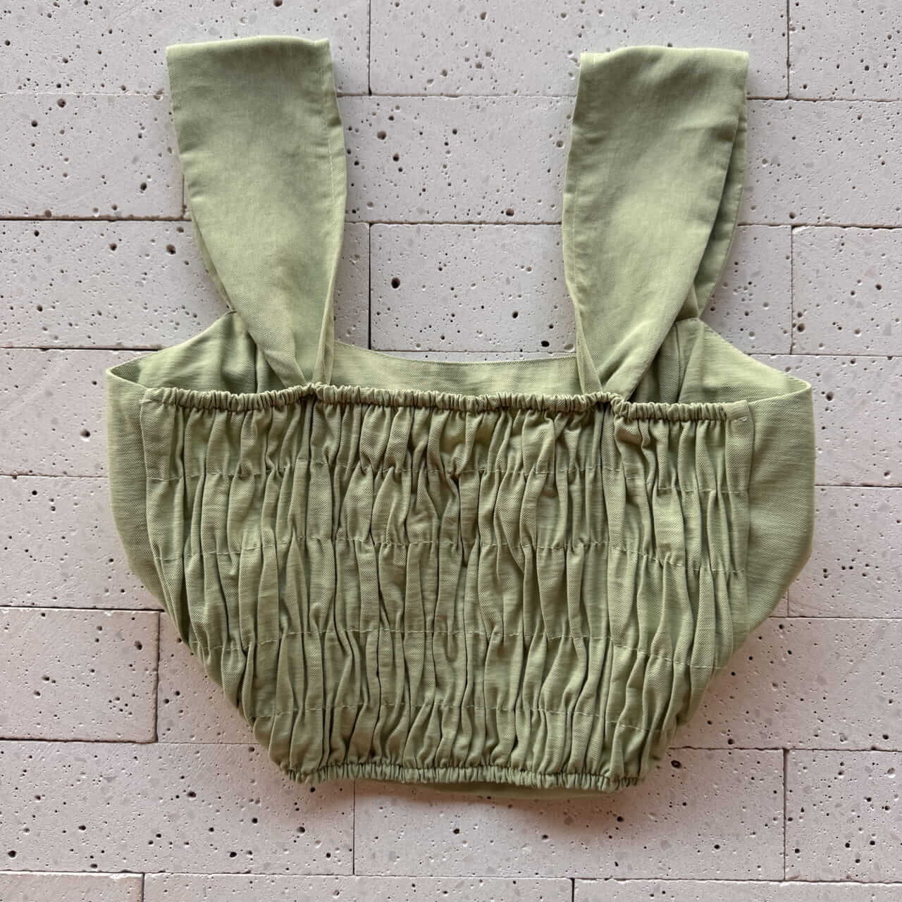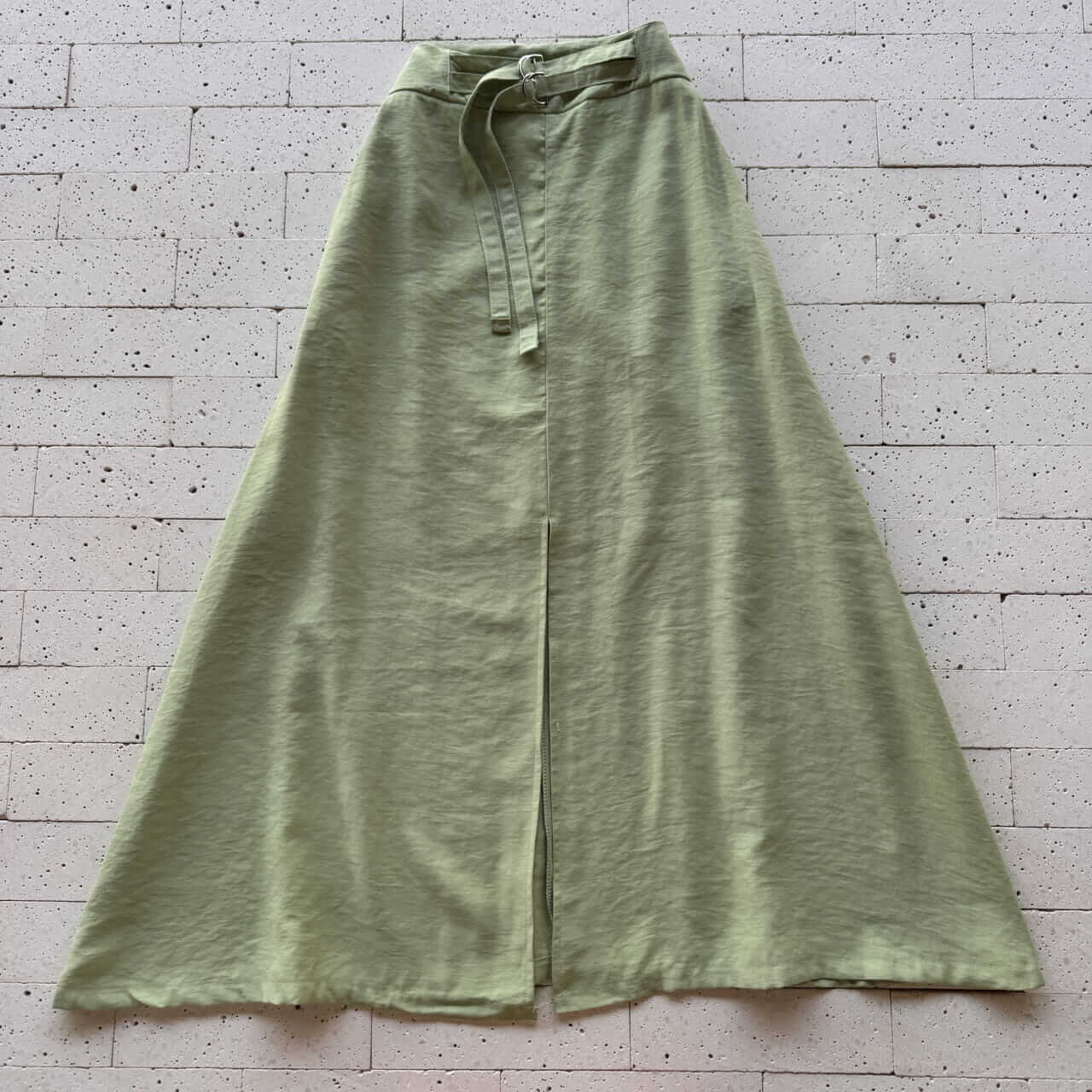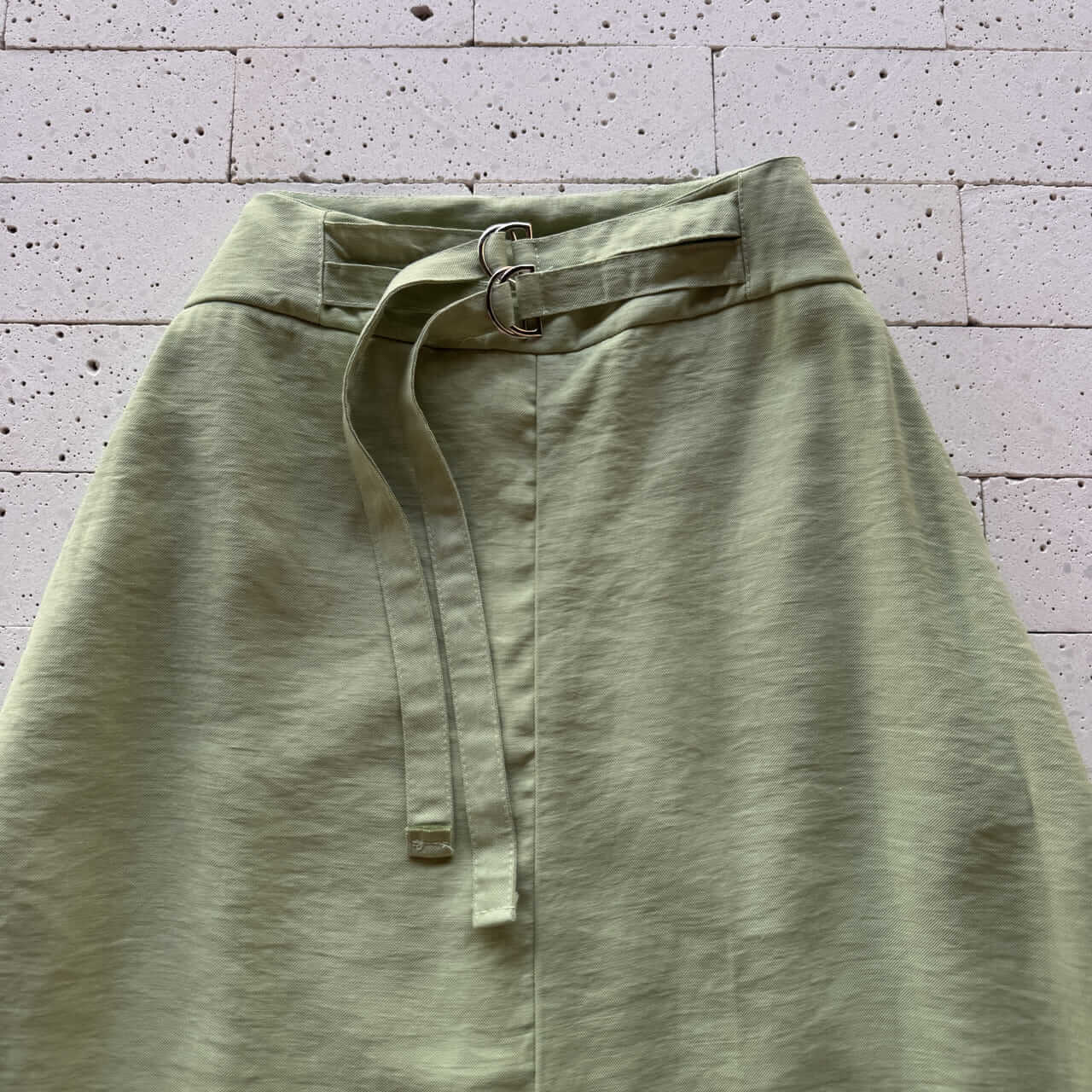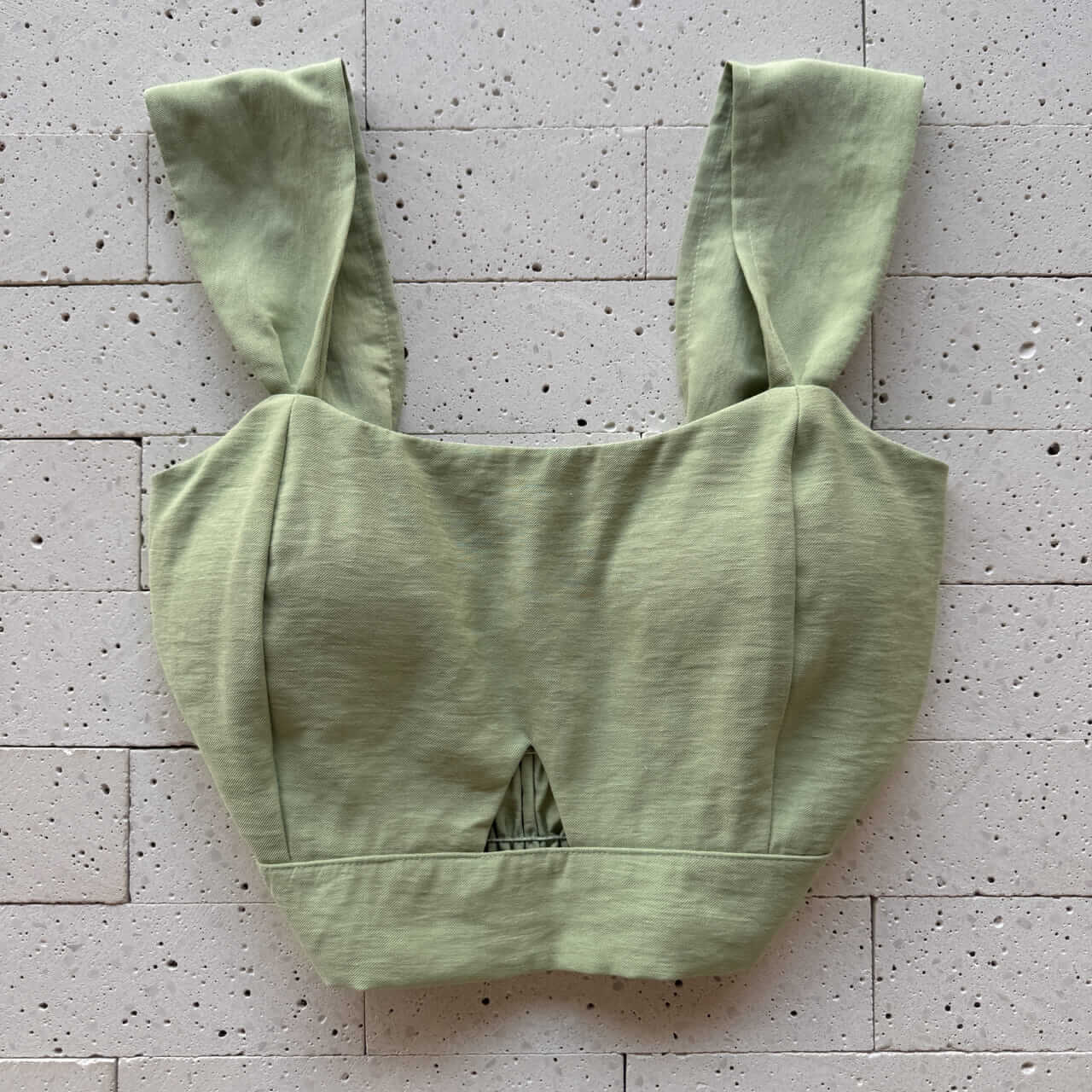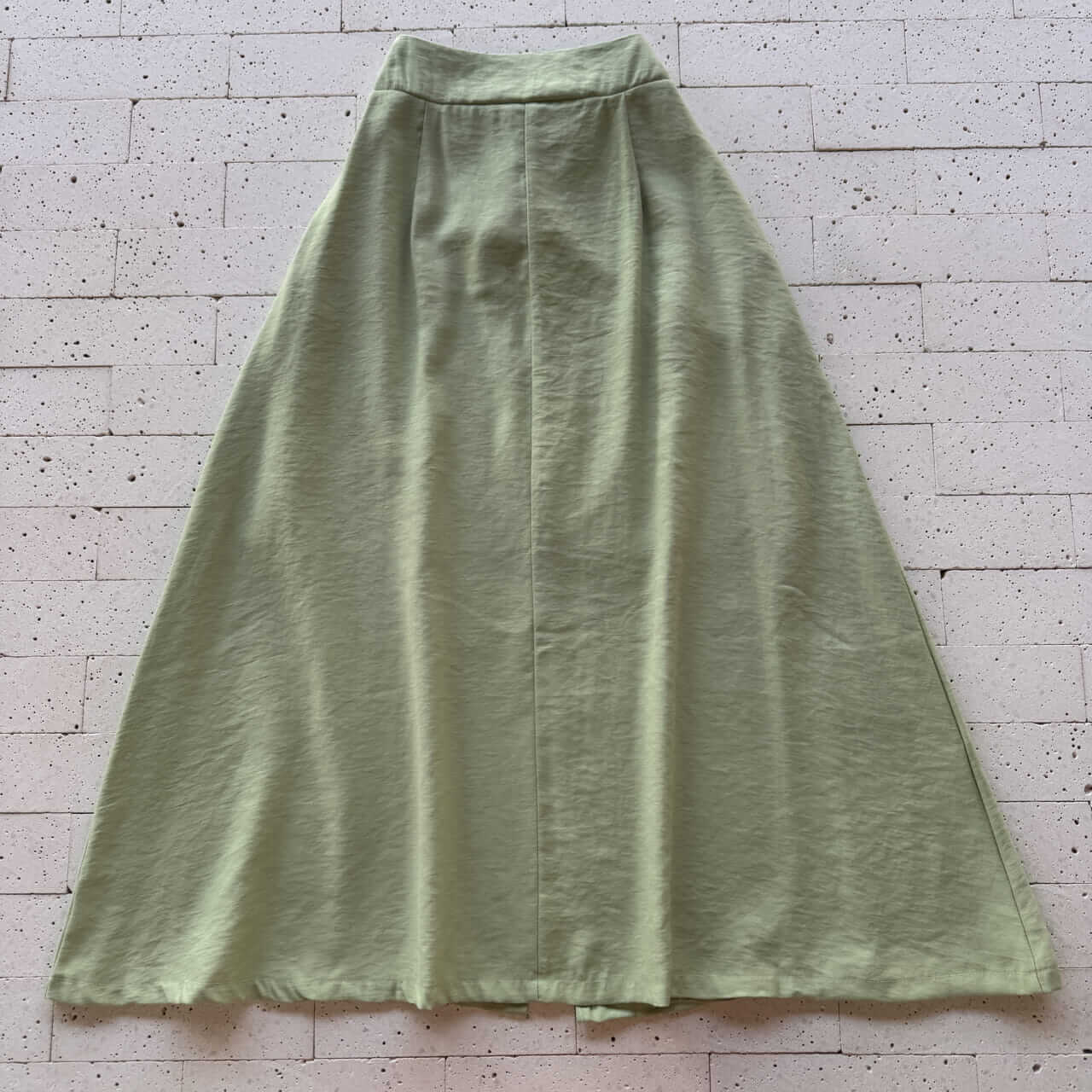 CONJUNTO MARRANT CROPPED ALÇA LARGA E SAIA MIDI COM FENDA PISTACHE