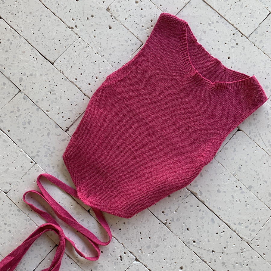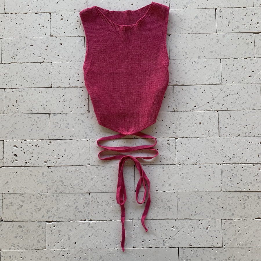 As mangas estilo regata dão mobilidade à região e evidenciam os ombros. O recorte assimétrico dá alongamento ao corpo. A amarração embutida no cropped permite criar diferentes padrões de laços. O detalhe em elástico na cintura auxilia na marcação da cintura. A fenda lateral adiciona sensualidade de forma sutil.