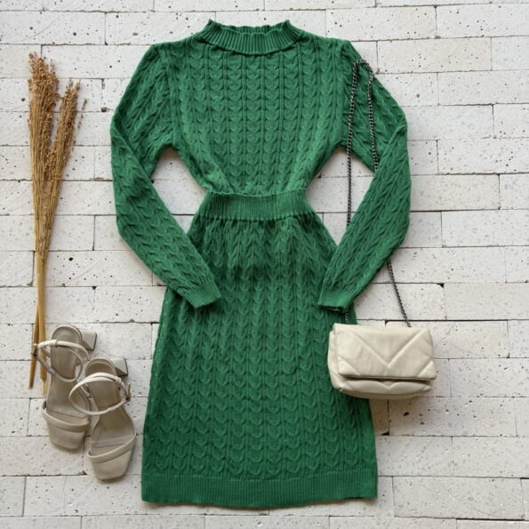 CONJUNTO MODAL DETALHADO BLUSA MANGA LONGA E SAIA LUXO VERDE