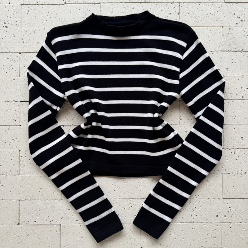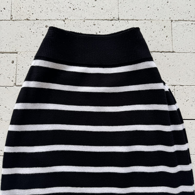 Como Usar o Conjunto Modal Listrado Cropped Manga Longa e Saia Midi Preto