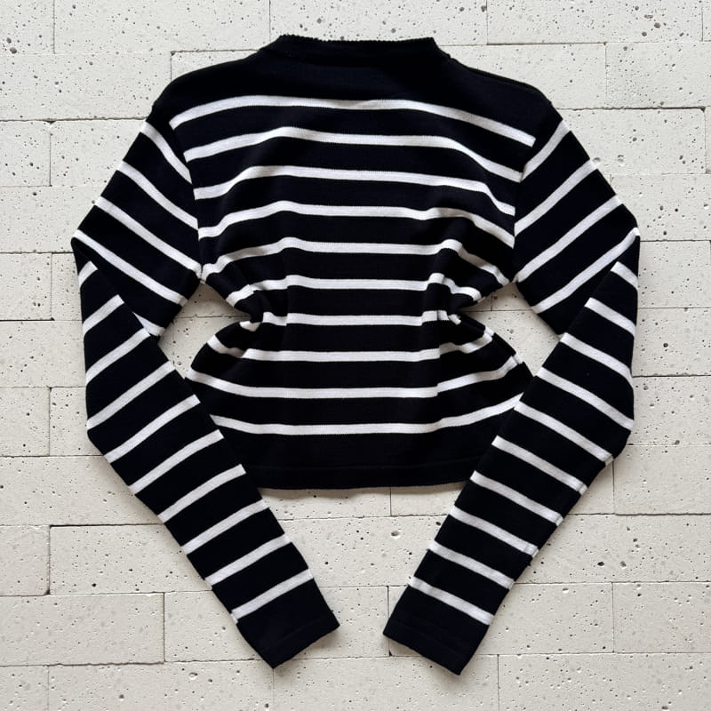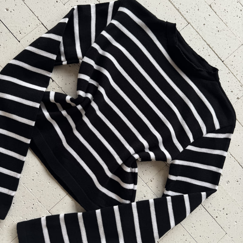O conjunto modal listrado preto é a combinação perfeita de conforto e elegância. Composto por um cropped de manga longa com recorte na cintura e uma saia midi reta de cintura alta, ambas as peças seguem o mesmo padrão de listras horizontais em branco e preto, garantindo harmonia e modernidade ao look. O tecido encorpado com elasticidade proporciona ajuste confortável ao corpo, valorizando a silhueta sem marcar. Ideal para looks casuais ou produções mais sofisticadas com toque contemporâneo.