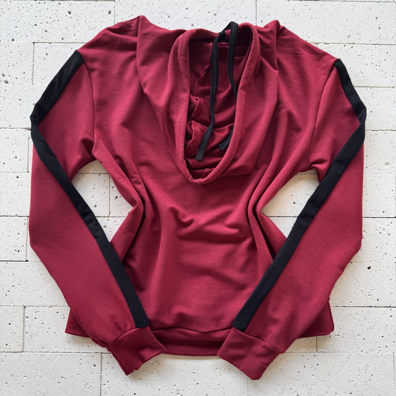 Conjunto Moletinho com Capuz Detalhe Faixa Marsala – Estilo e Conforto em um Só Look