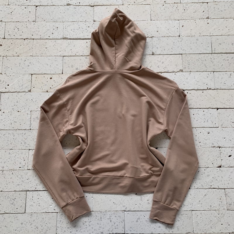 - Blusa: mangas longas, touca com ajuste, punho e barra com pala