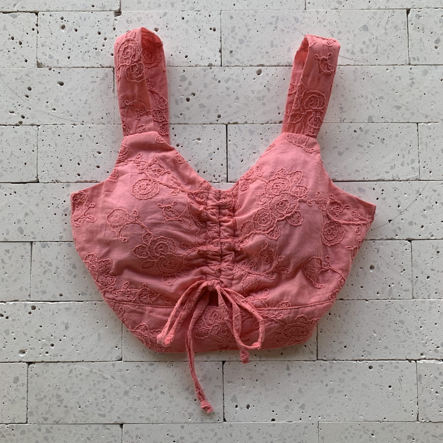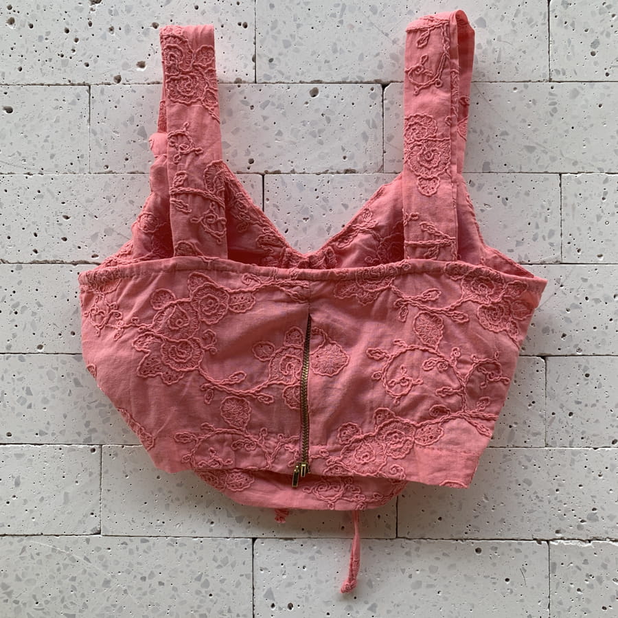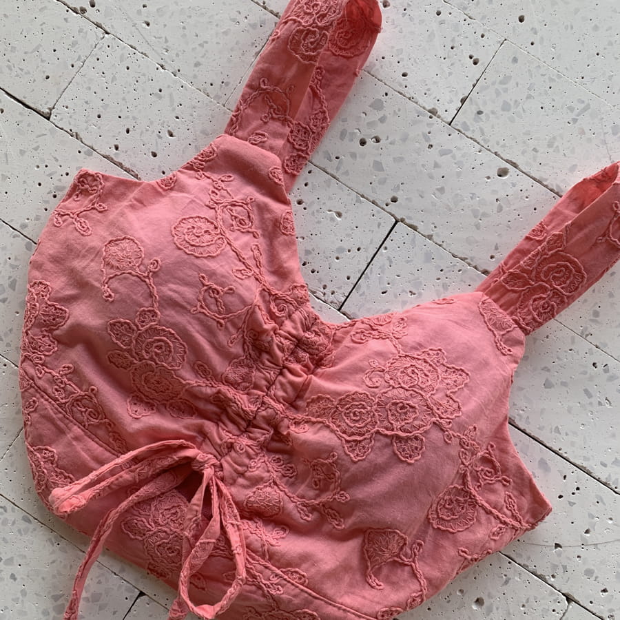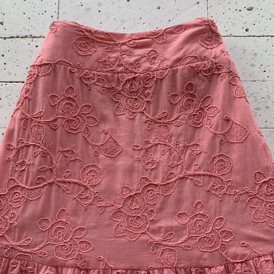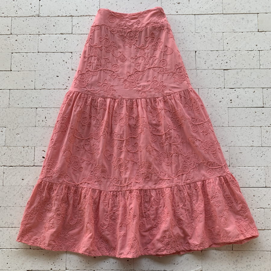 CONJUNTO SAIA LONGUETE COM TECIDO BORDADO ROSA