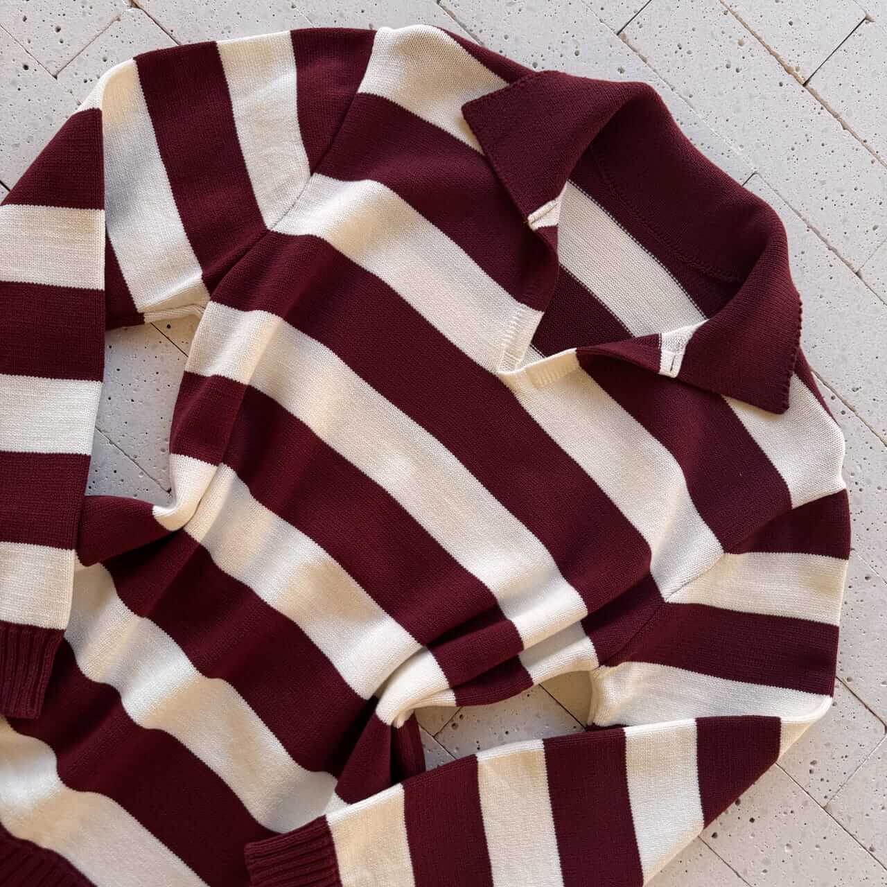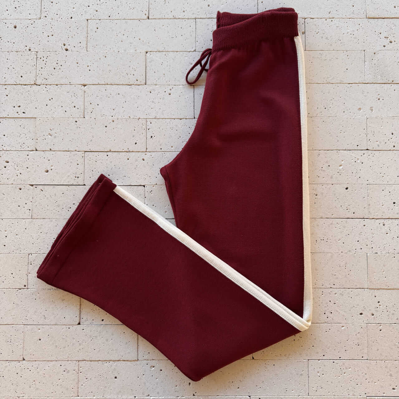 CONJUNTO TRICÔ LISTRADO BLUSA GOLINHA E CALÇA VINHO – Elegância Intensa com Estilo Contemporâneo