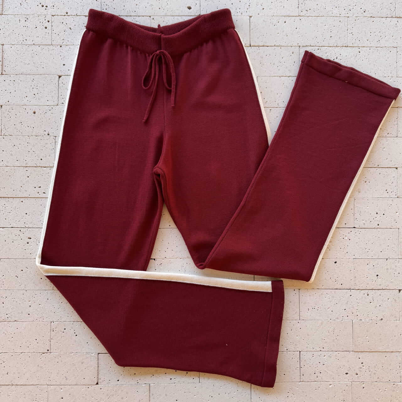 CONJUNTO TRICO LISTRADO BLUSA GOLINHA E CALÇA VINHO