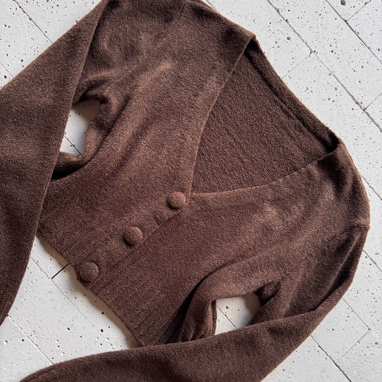 O tom marrom é elegante, sofisticado e muito versátil, perfeito para composições modernas em dias mais amenos e frios. Use o conjunto completo com botas e acessórios dourados para uma produção refinada, ou aposte em tênis para um visual casual chic. As peças também funcionam muito bem separadas: o cropped combina com jeans ou saias de cintura alta, o casaquinho é ideal para sobreposições charmosas, e a pantalona cria looks elegantes com blusas ajustadas ou camisas leves.