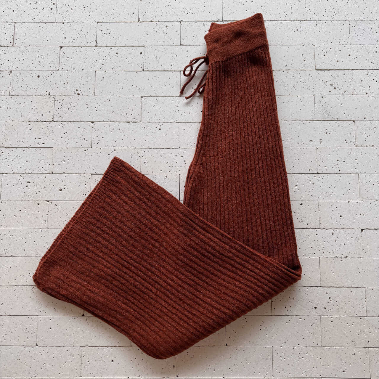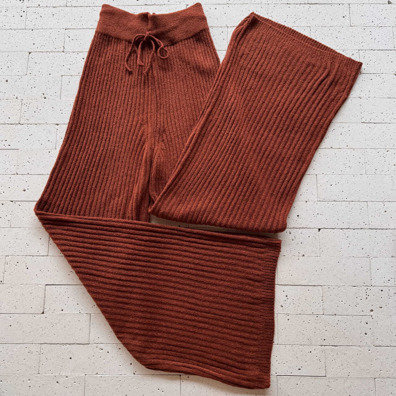 CONJUNTO TRICÔ MOUSSE BLUSA DETALHE RECORTE E PANTALONA TELHA – Elegância Quente com Toque Confortável