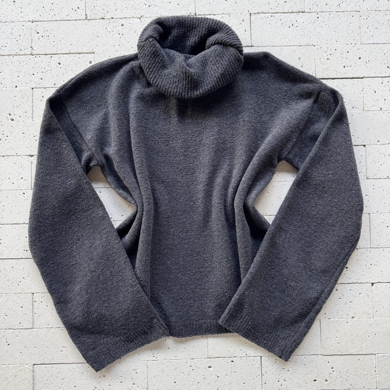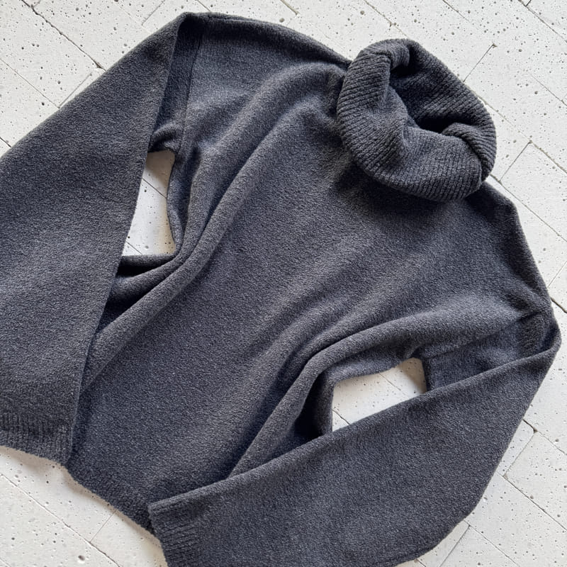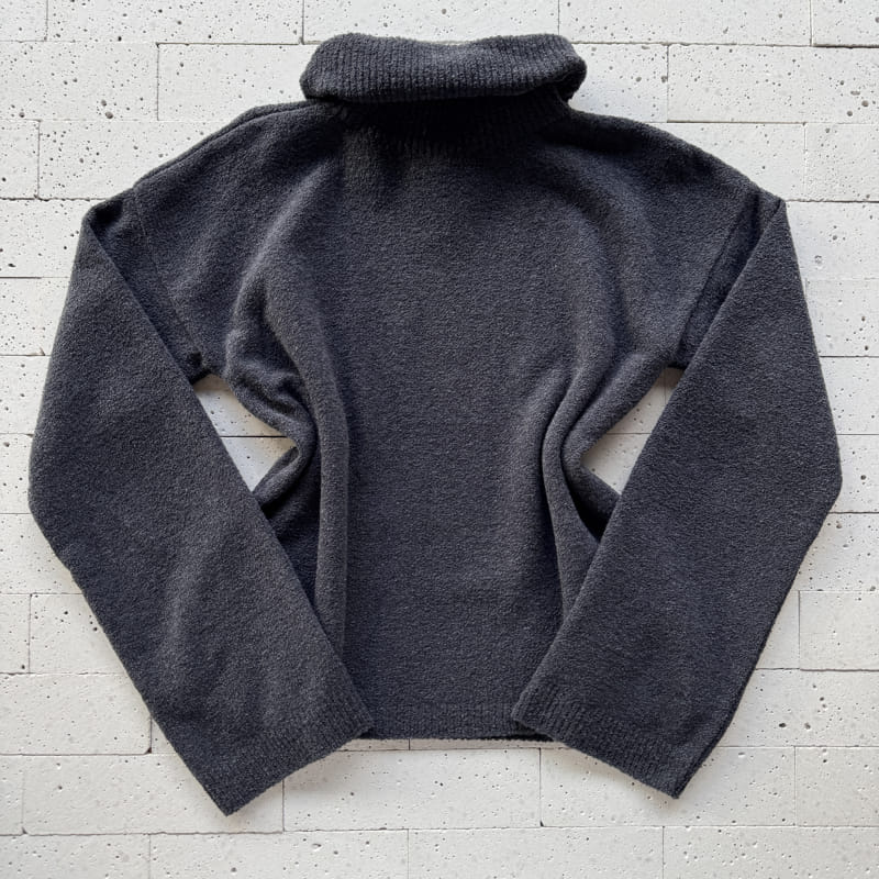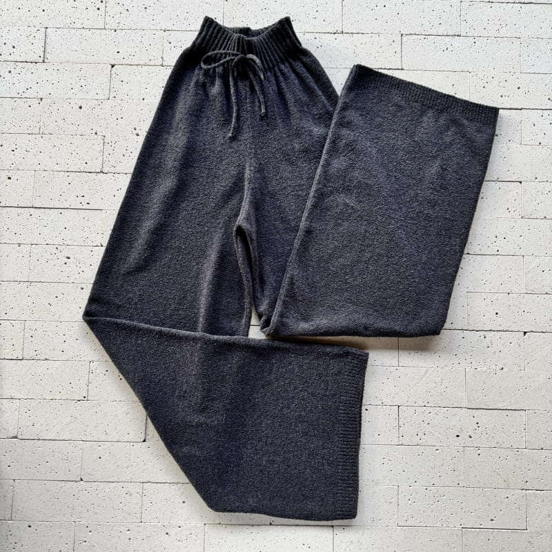 CONJUNTO TRICÔ MOUSSE COM GOLA BOBA MESCLADO GRAFITE – Elegância Minimalista e Conforto Aconchegante