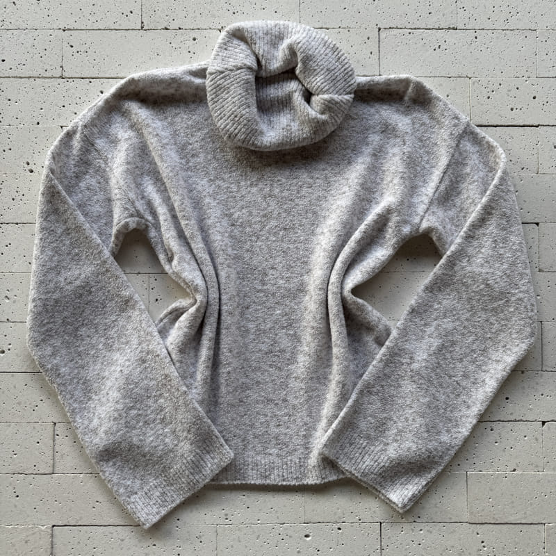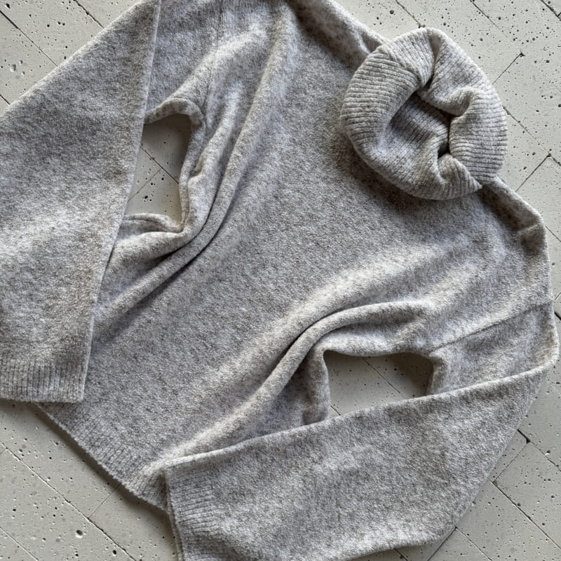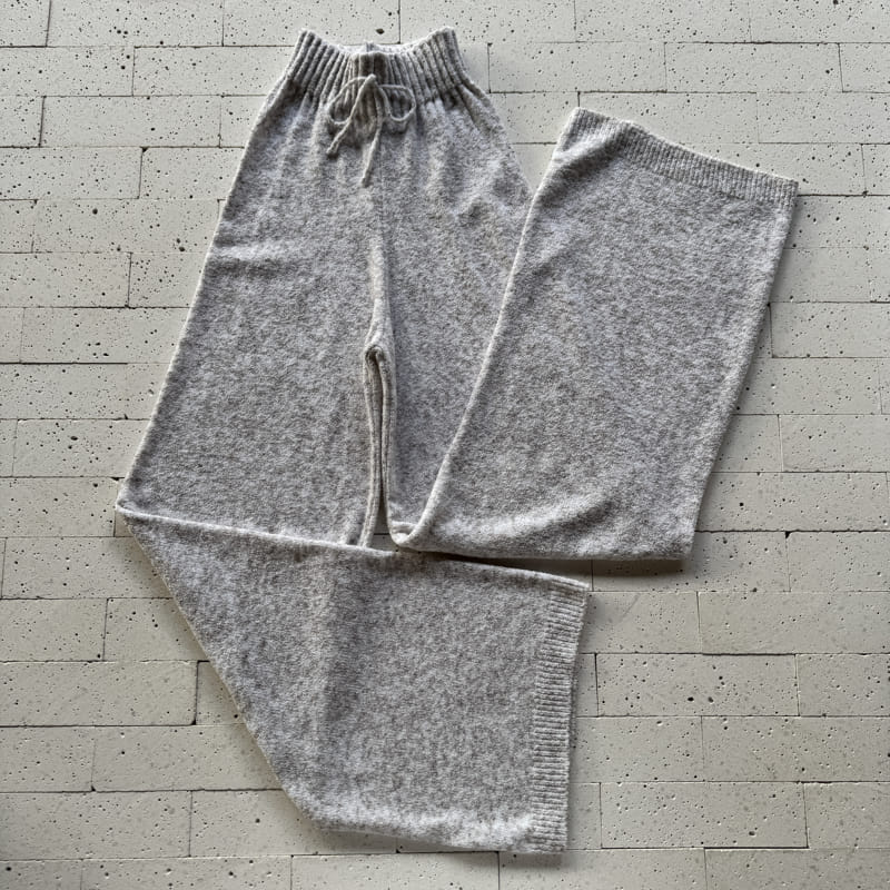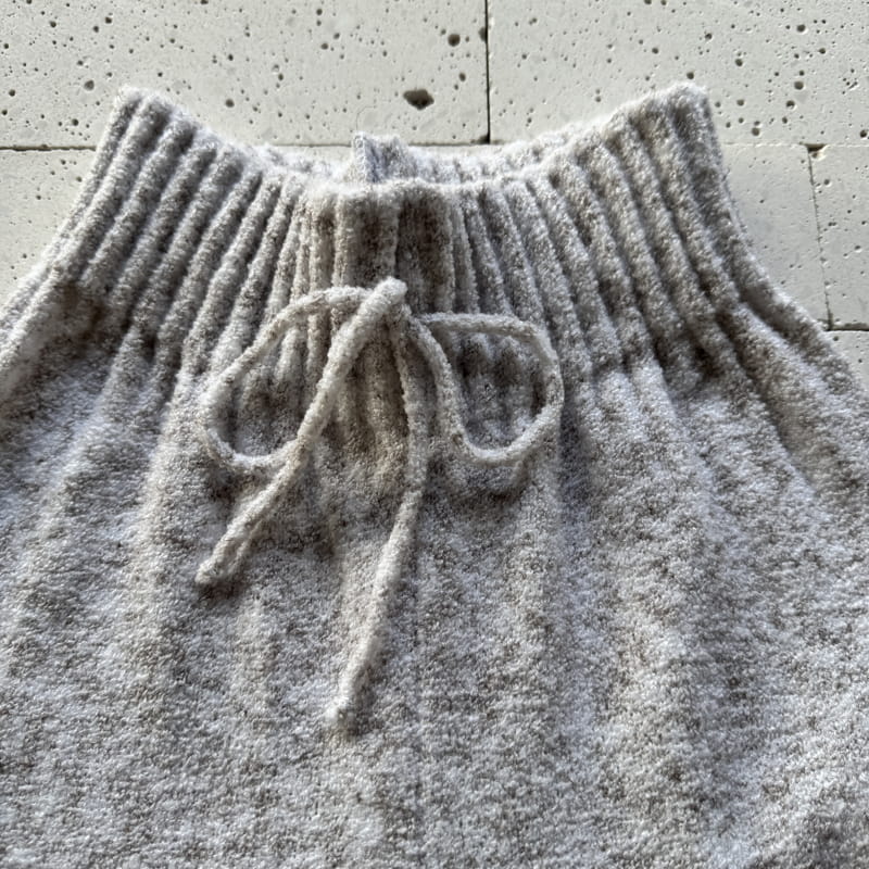 CONJUNTO TRICÔ MOUSSE COM GOLA BOBA MESCLADO OFF – Sofisticação Neutra com Toque Macio