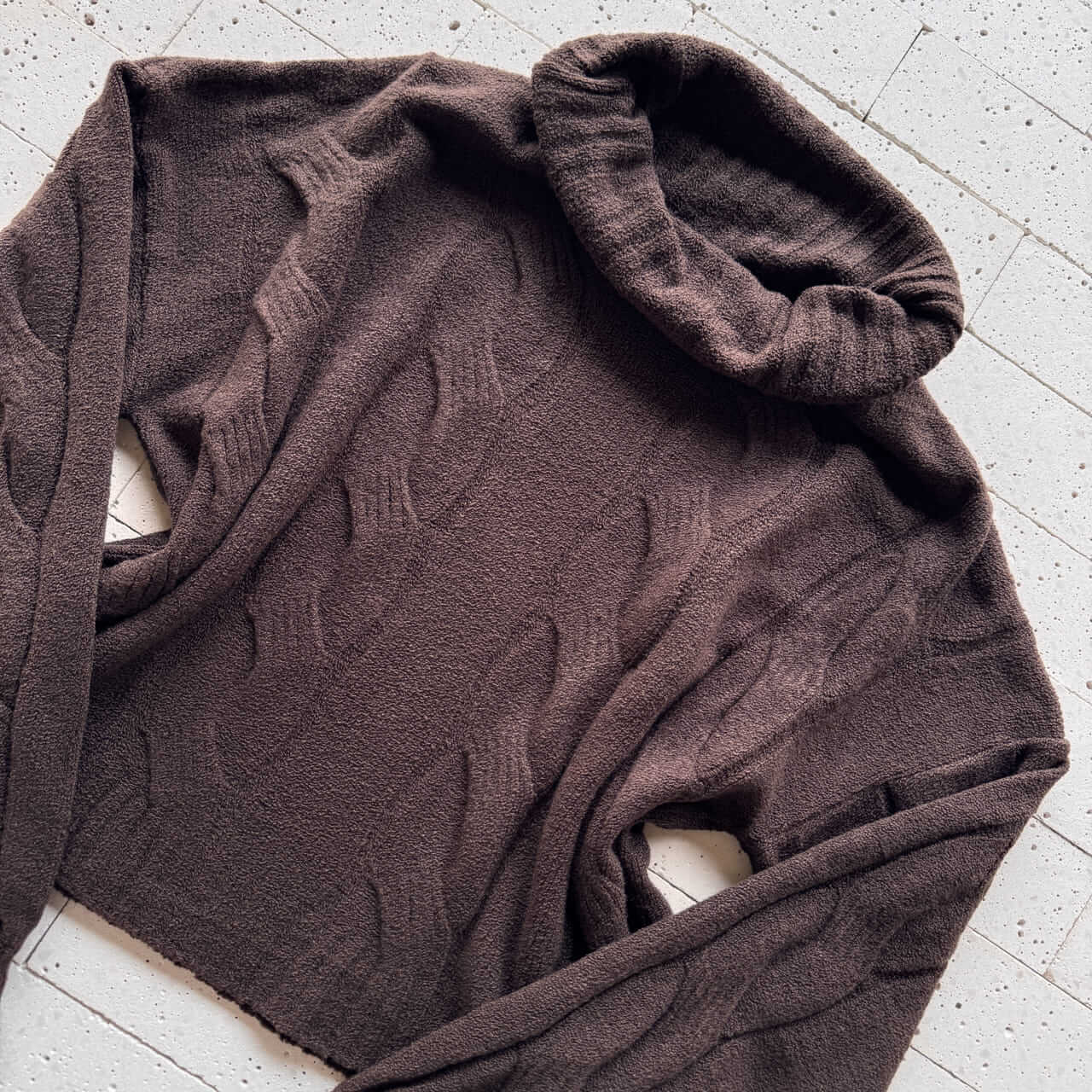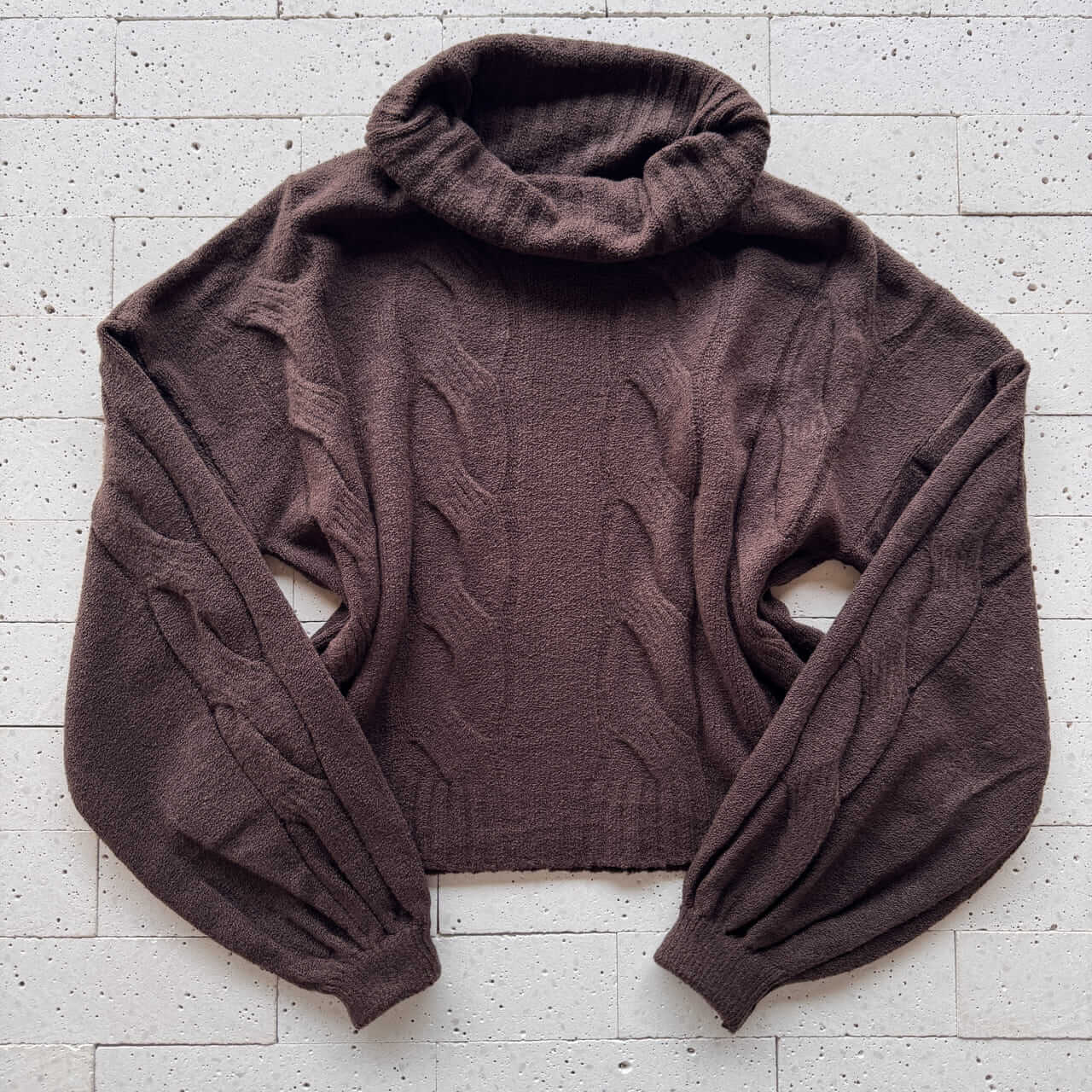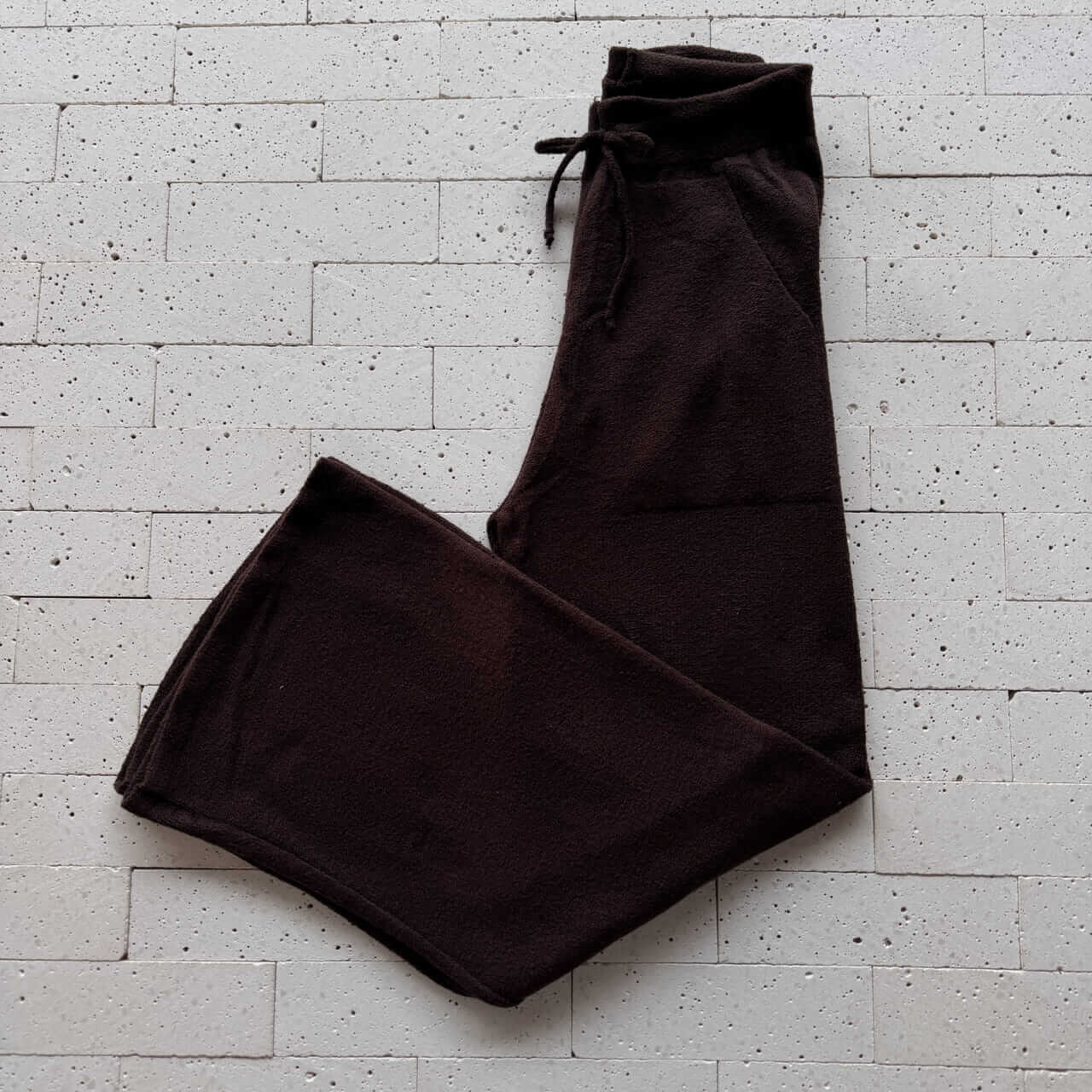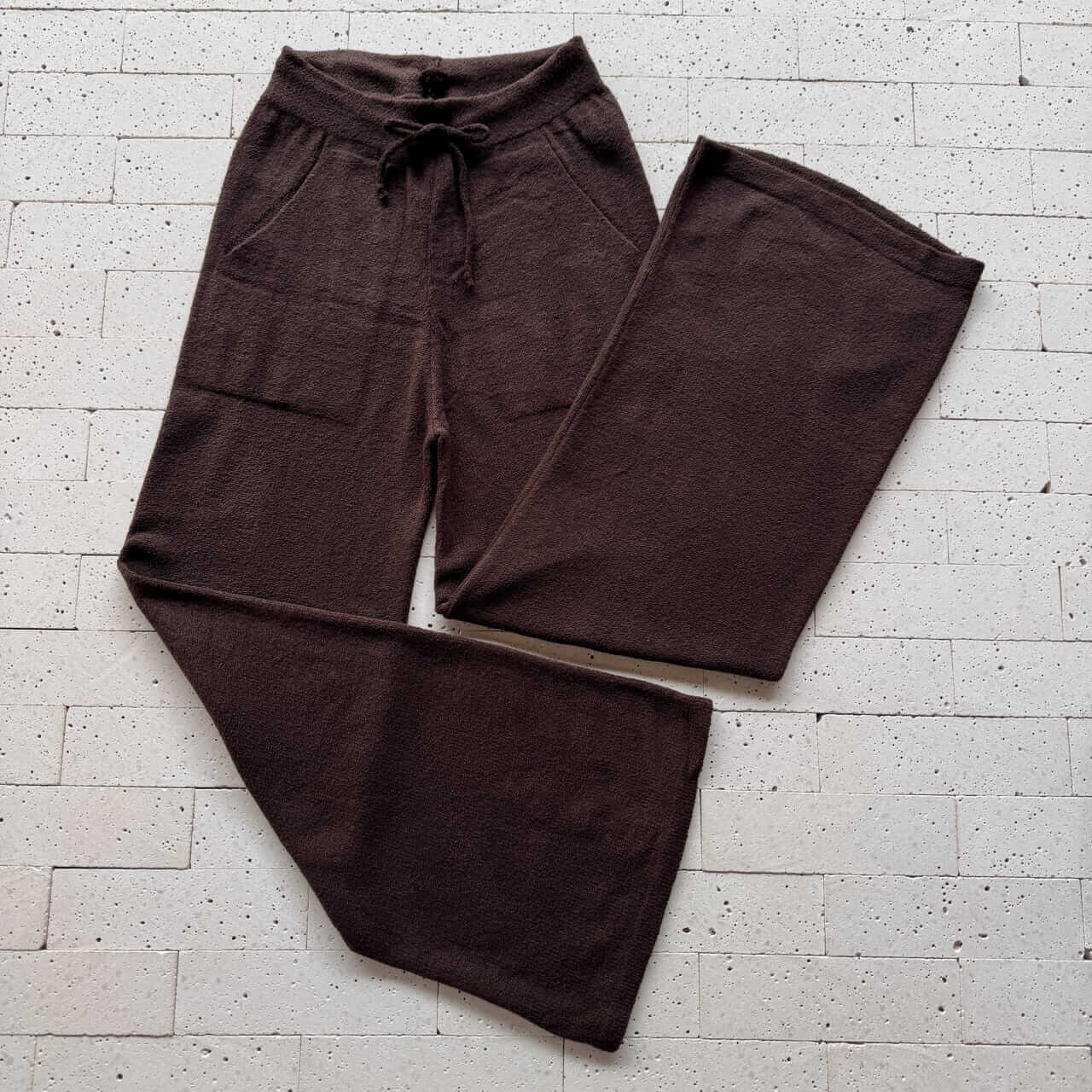 CONJUNTO TRICO MOUSSE CROPPED ALONGADO E PANTALONA CAFÉ