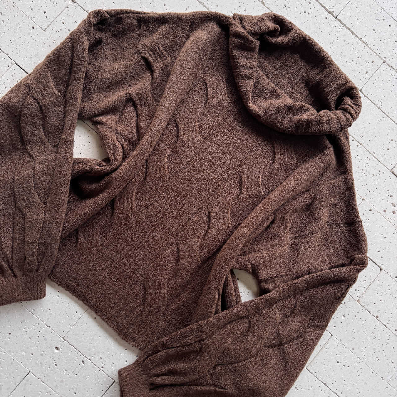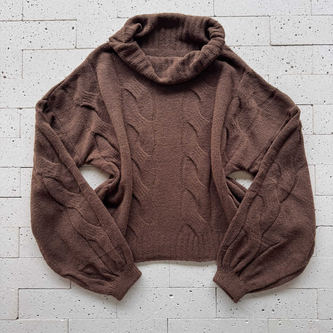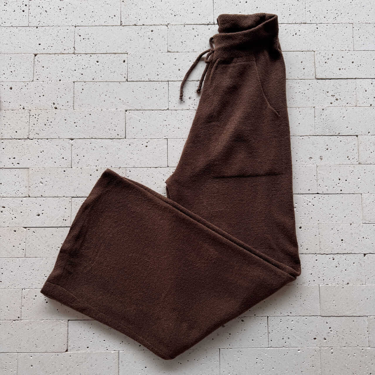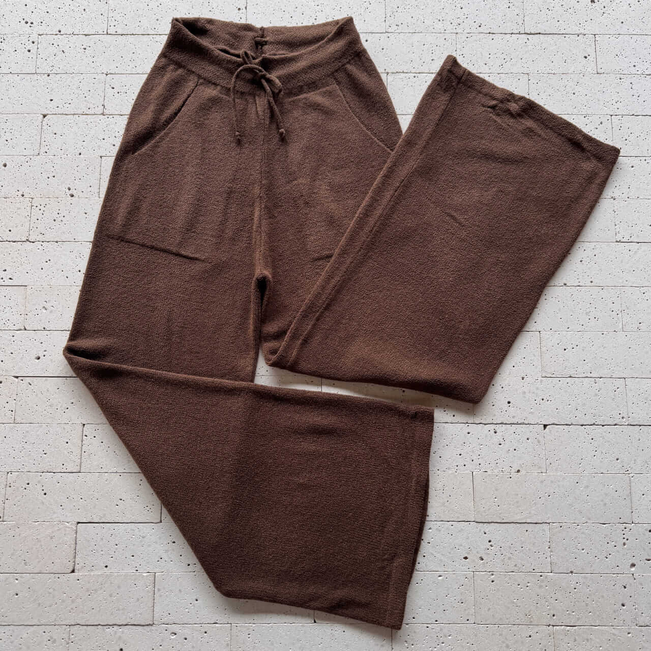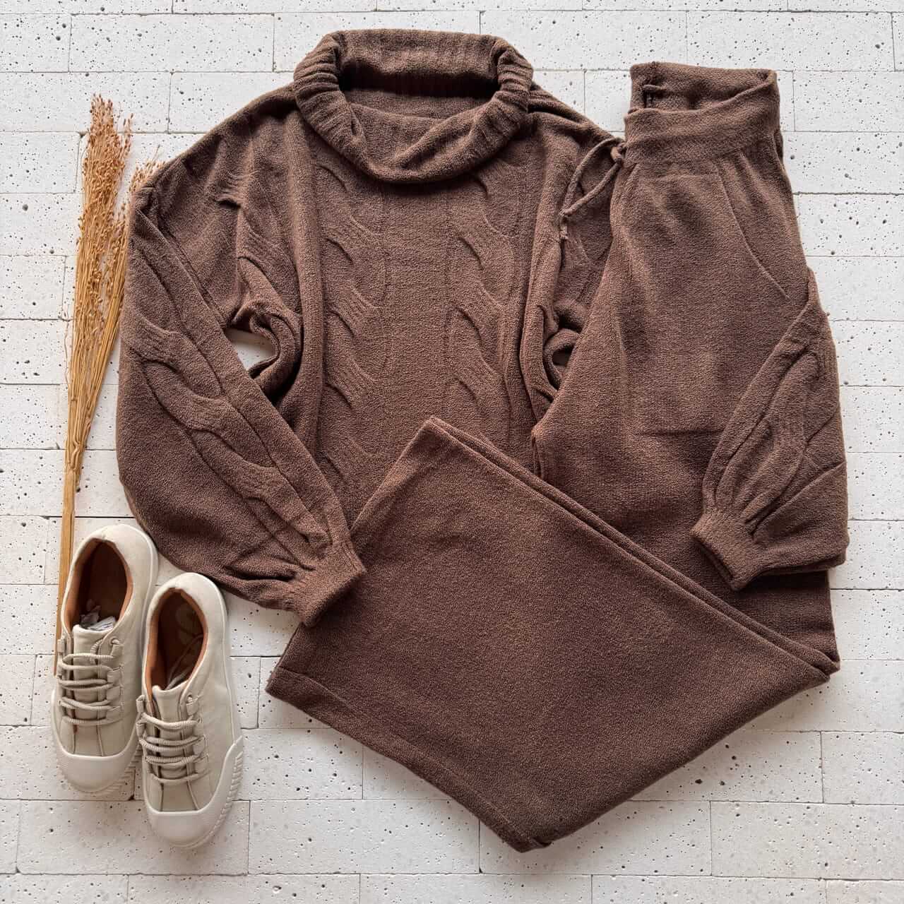 CONJUNTO TRICO MOUSSE CROPPED ALONGADO E PANTALONA MARROM