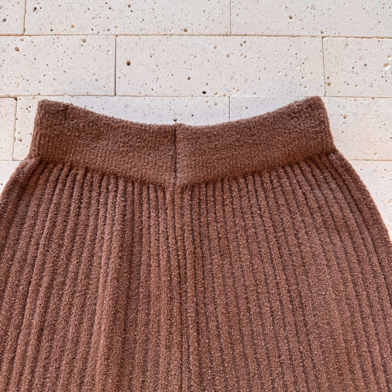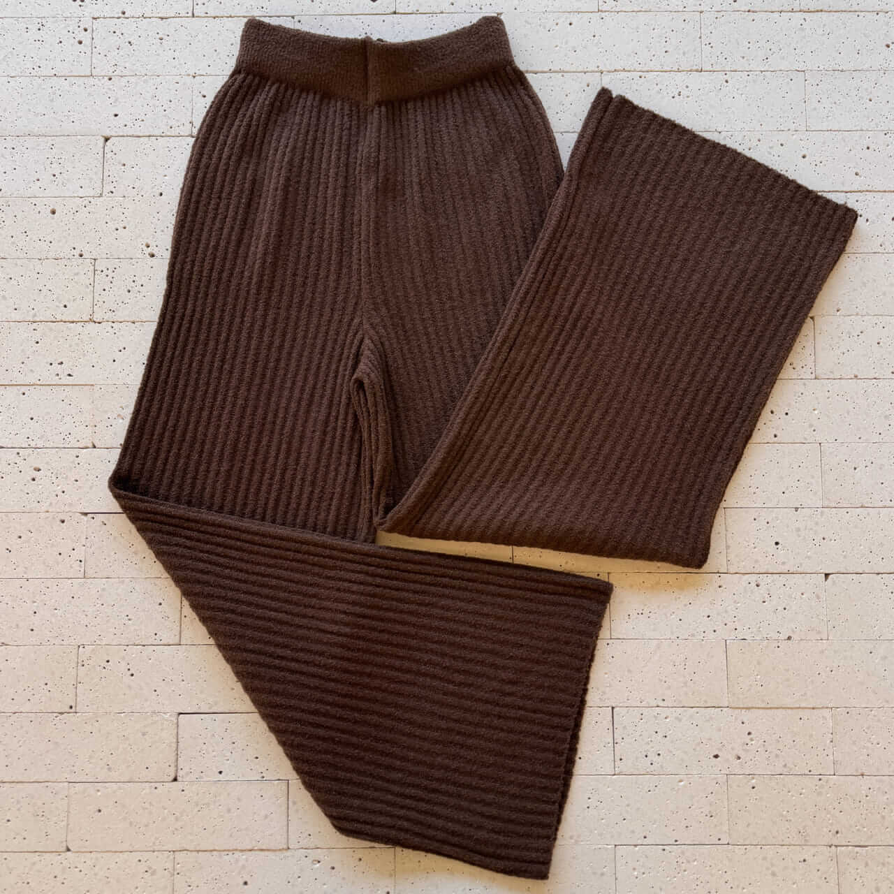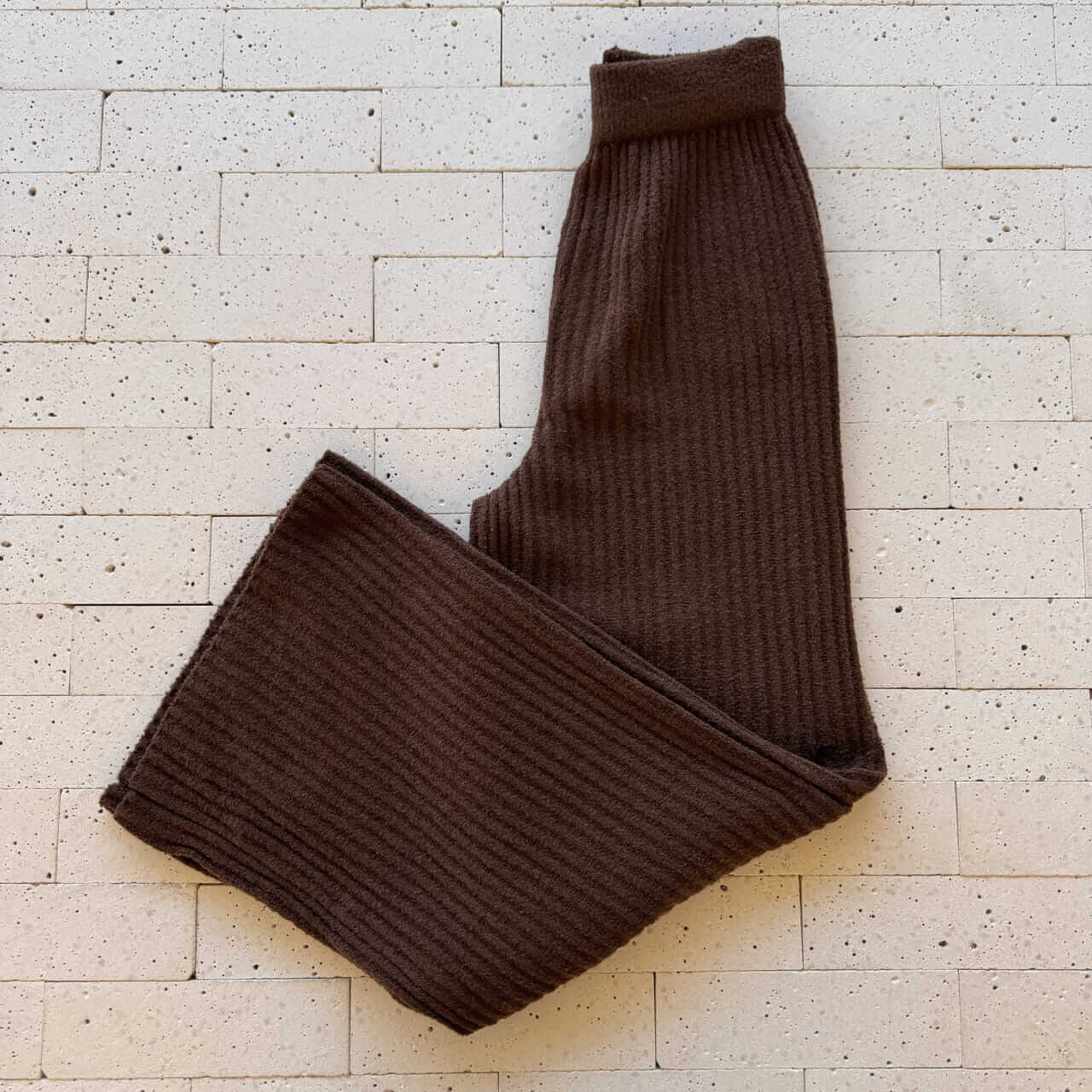 CONJUNTO TRICO MOUSSE CROPPED COM LISTRA E PANTALONA MARROM