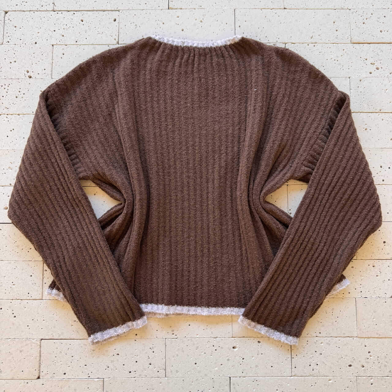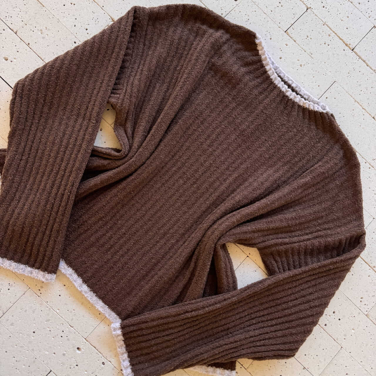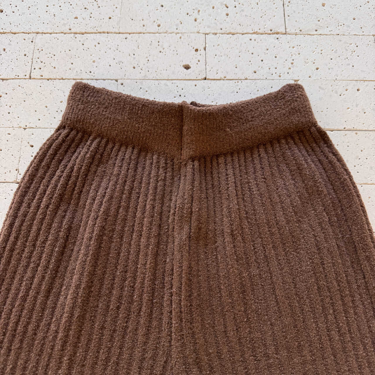 CONJUNTO TRICO MOUSSE CROPPED COM LISTRA E PANTALONA MARROM