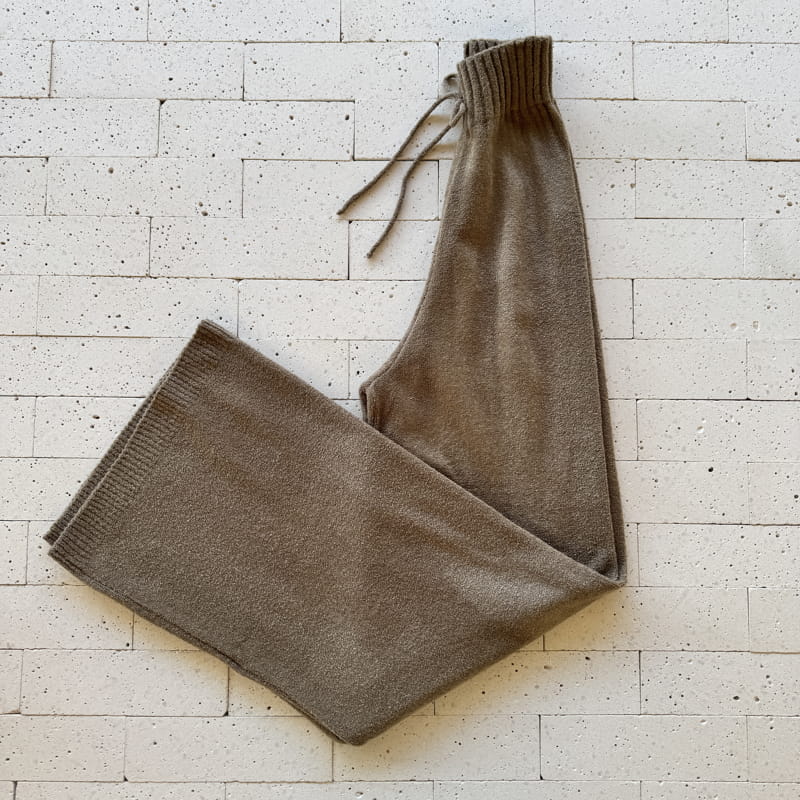 CONJUNTO TRICO MOUSSE CROPPED E CALÇA PANTALONA BEGE 2.0