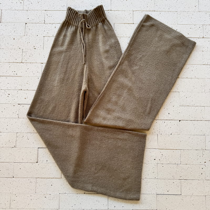 CONJUNTO TRICÔ MOUSSE CROPPED E CALÇA PANTALONA BEGE 2.0 – Conforto e Estilo em Tricô Premium