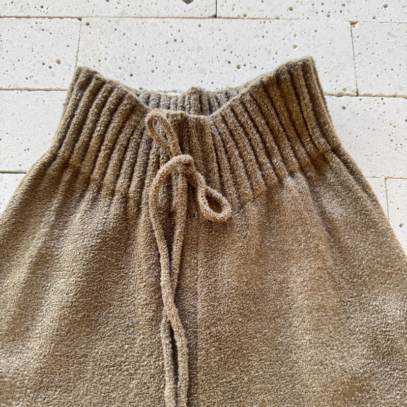 - Calça pantalona com cós alto em ribana e cordão para ajuste