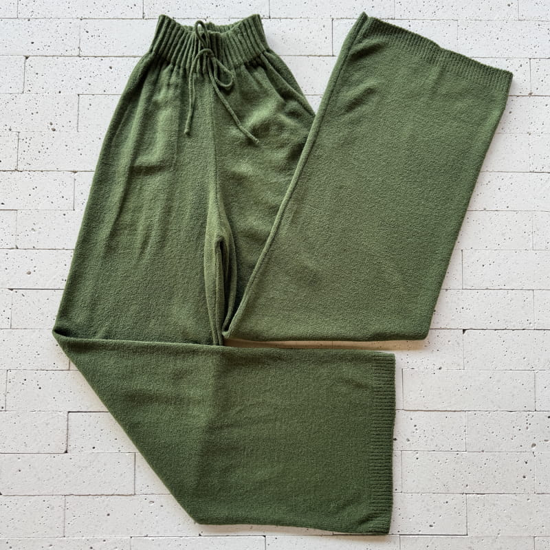 CONJUNTO TRICO MOUSSE CROPPED E CALÇA PANTALONA VERDE OLIVA – Estilo e Conforto em Tricô Premium