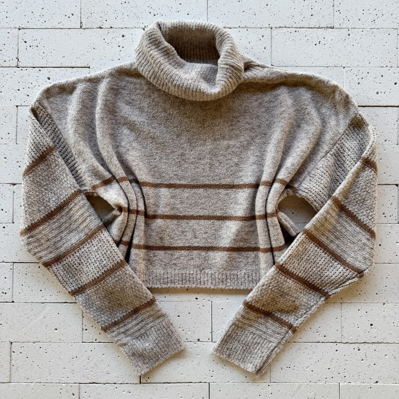 - Cropped com gola alta, punhos largos texturizados e comprimento encurtado