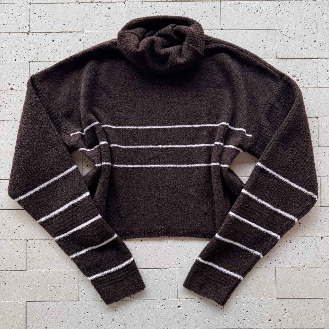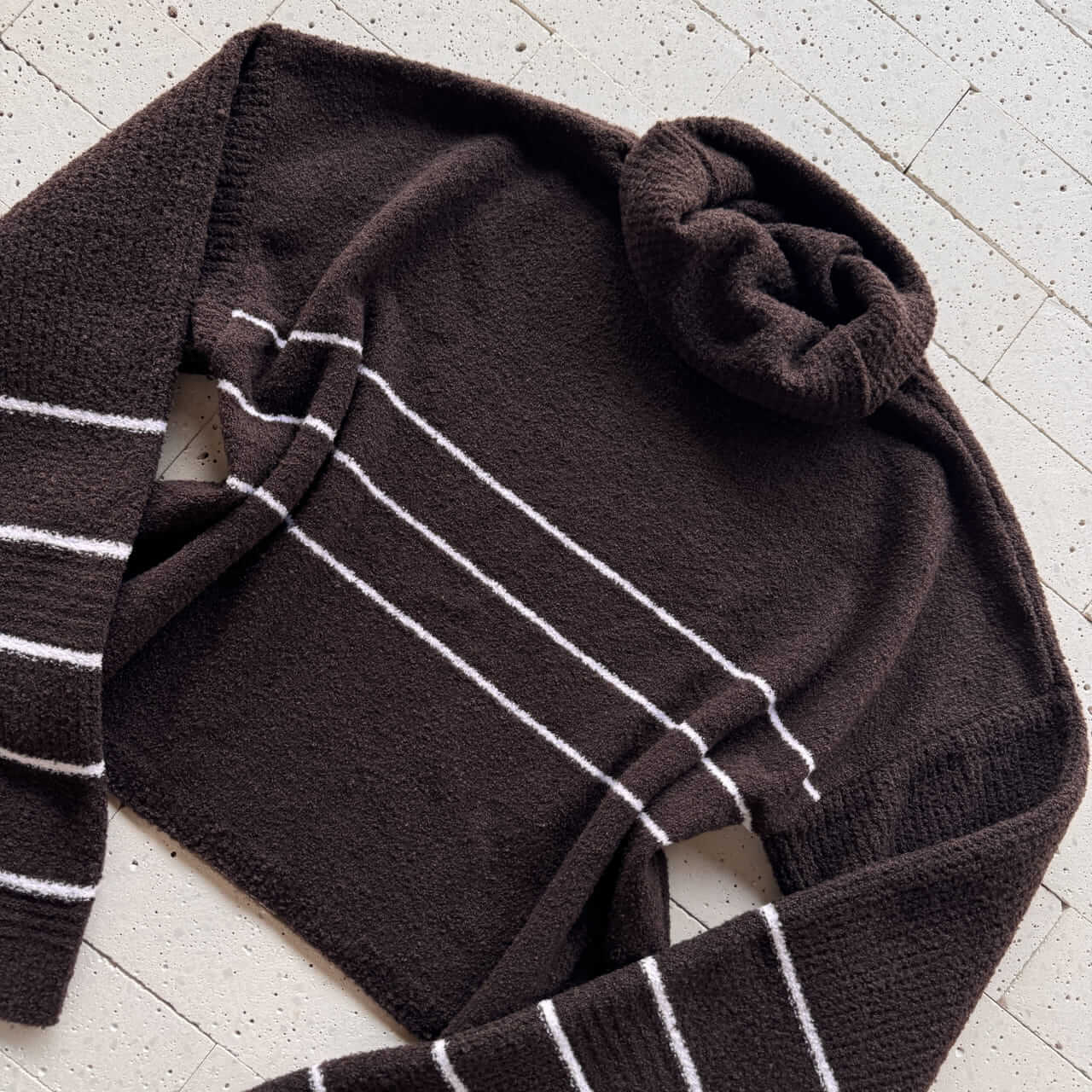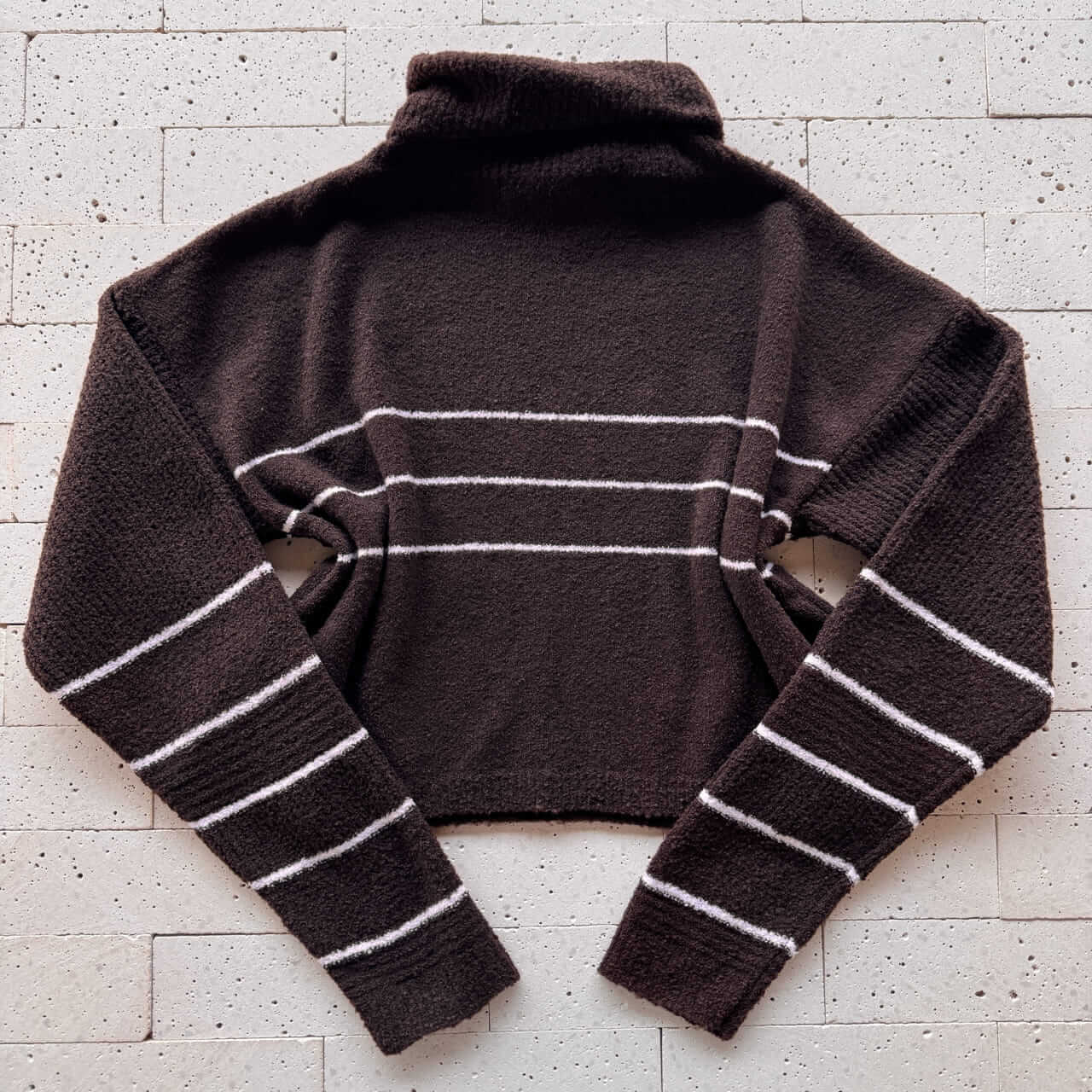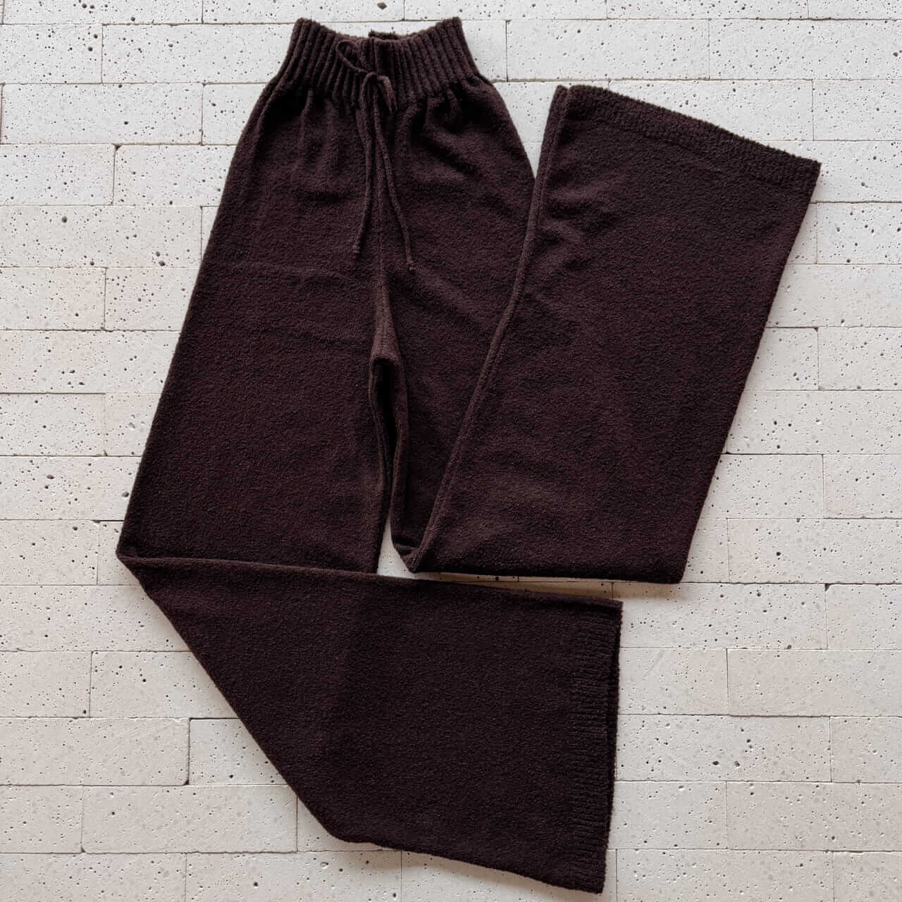 CONJUNTO TRICO MOUSSE CROPPED LISTRA E CALÇA PANTALONA CAFÉ