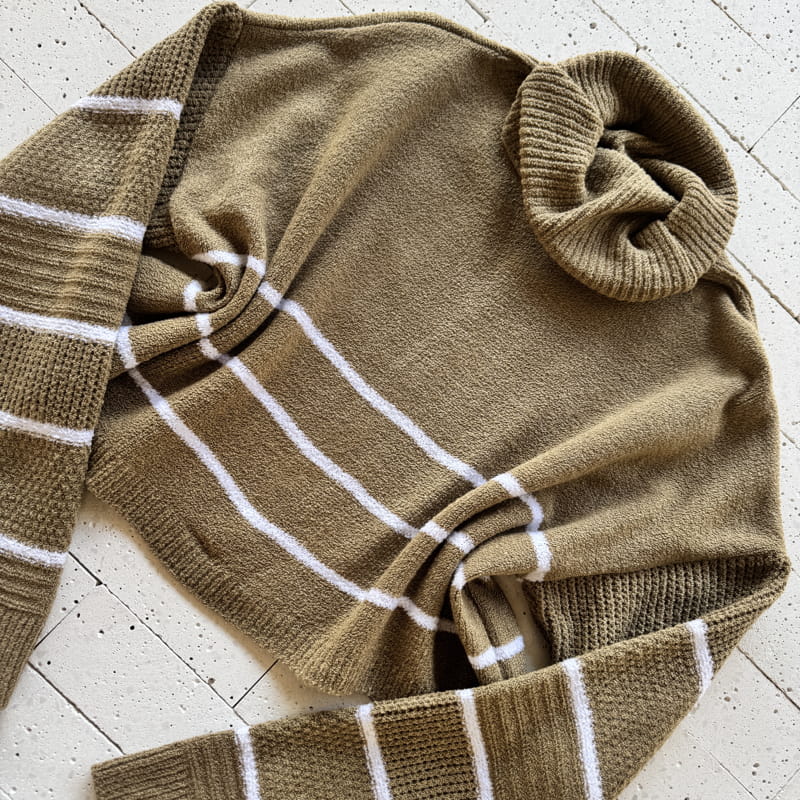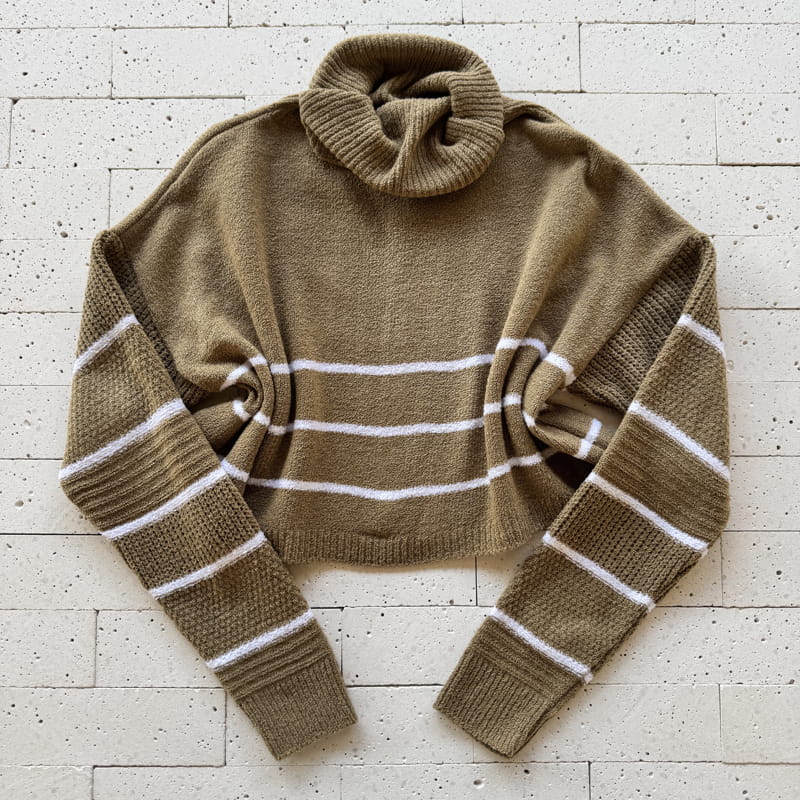 • Cropped com gola alta, punhos canelados e listras em relevo
