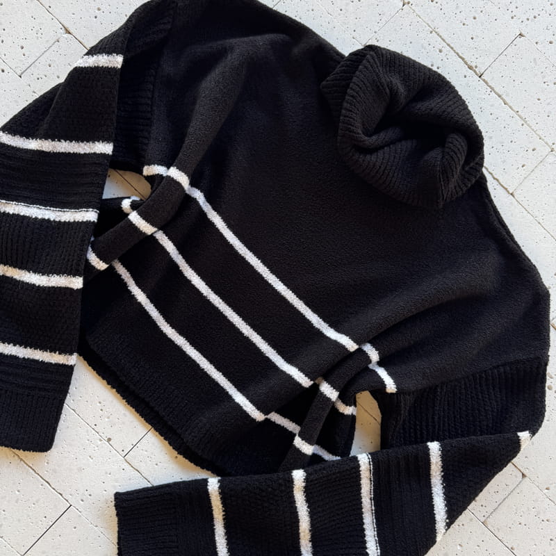 O Conjunto Tricô Mousse Cropped Listra e Calça Pantalona Preto é a escolha ideal para quem busca um visual sofisticado e confortável nos dias mais frios. O cropped traz gola alta volumosa e listras brancas horizontais que criam um contraste marcante e moderno. Os punhos amplos e texturizados nas mangas elevam o acabamento da peça. A calça tem modelagem pantalona ampla, cós com elástico e cordão funcional, que proporciona excelente adaptação ao corpo. Um look preto nada básico para arrasar com elegância em qualquer ocasião.