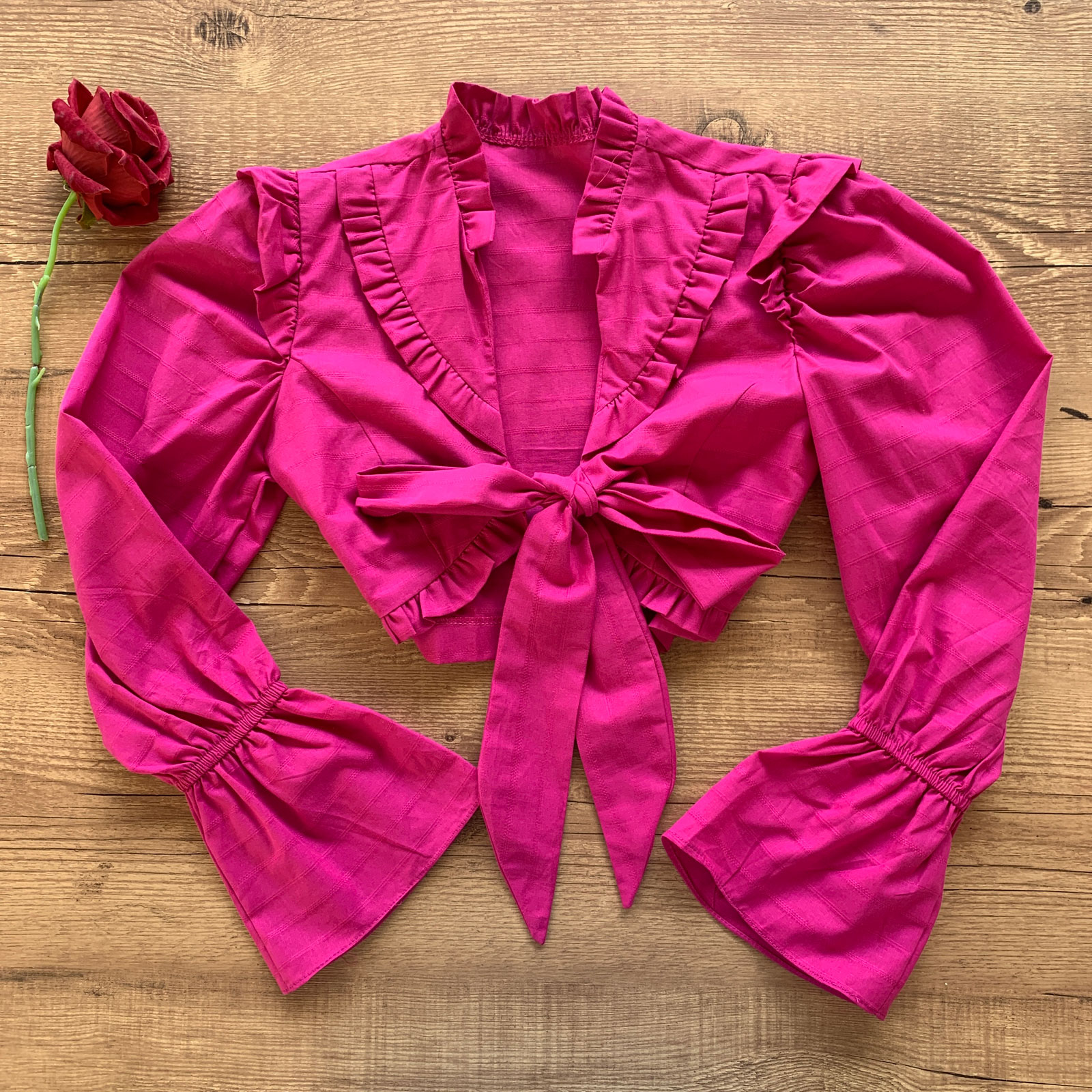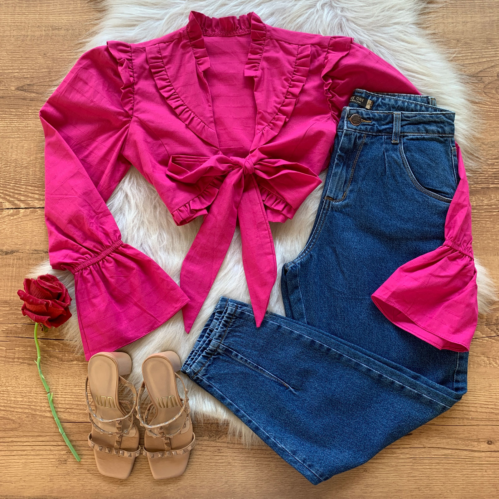 Como usar seu Cropped Babados Manga Flare com Laço no Decote Pink