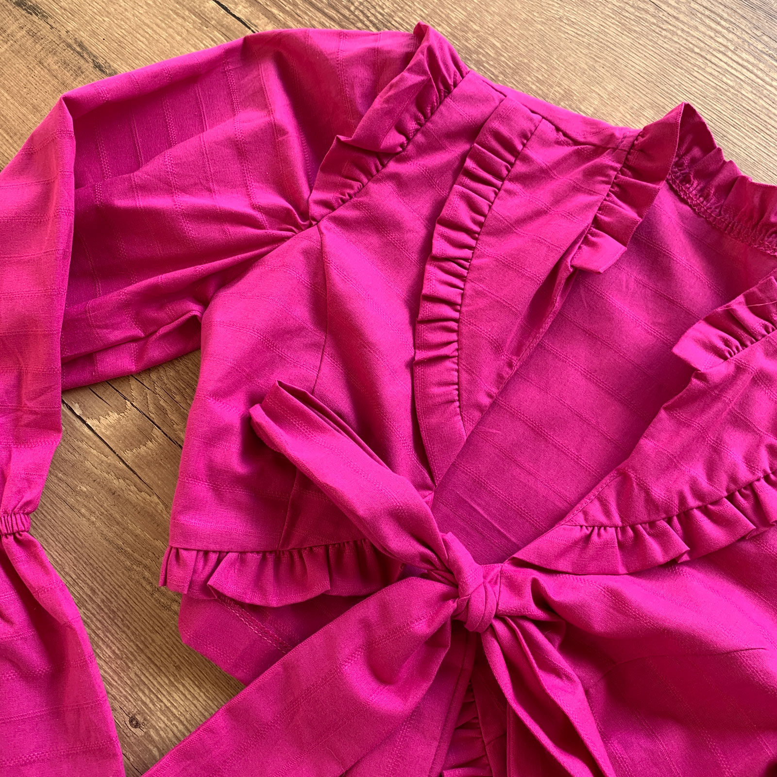 CROPPED BABADOS MANGA FLARE COM LAÇO NO DECOTE PINK