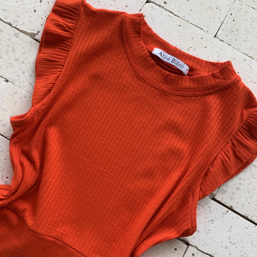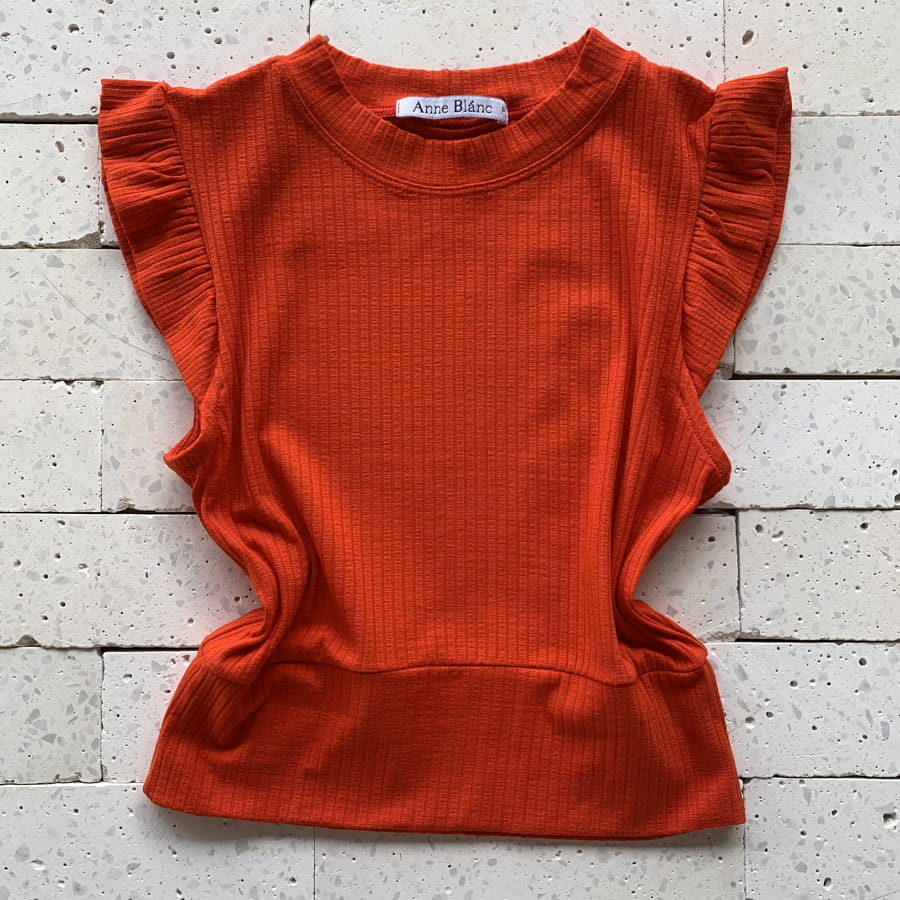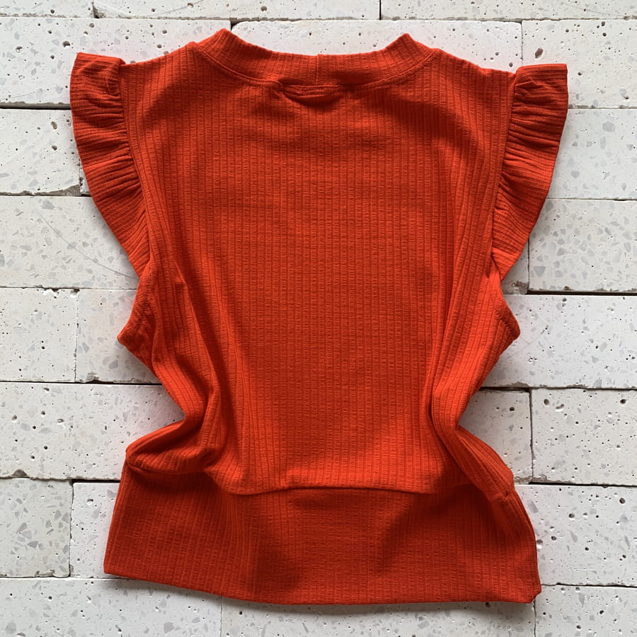 CROPPED CANELADO MANGA BABADOS SEM DECOTE LARANJA