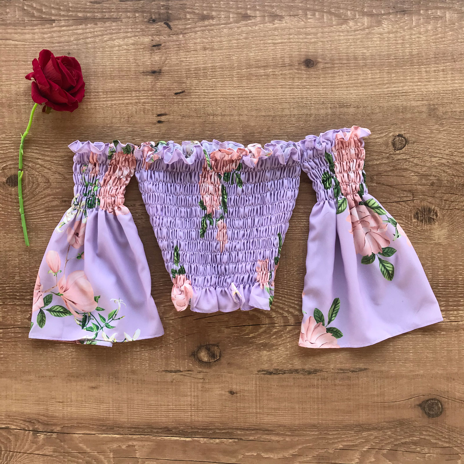 Como usar seu Cropped Ciganinha Drapeado Floral Lilás