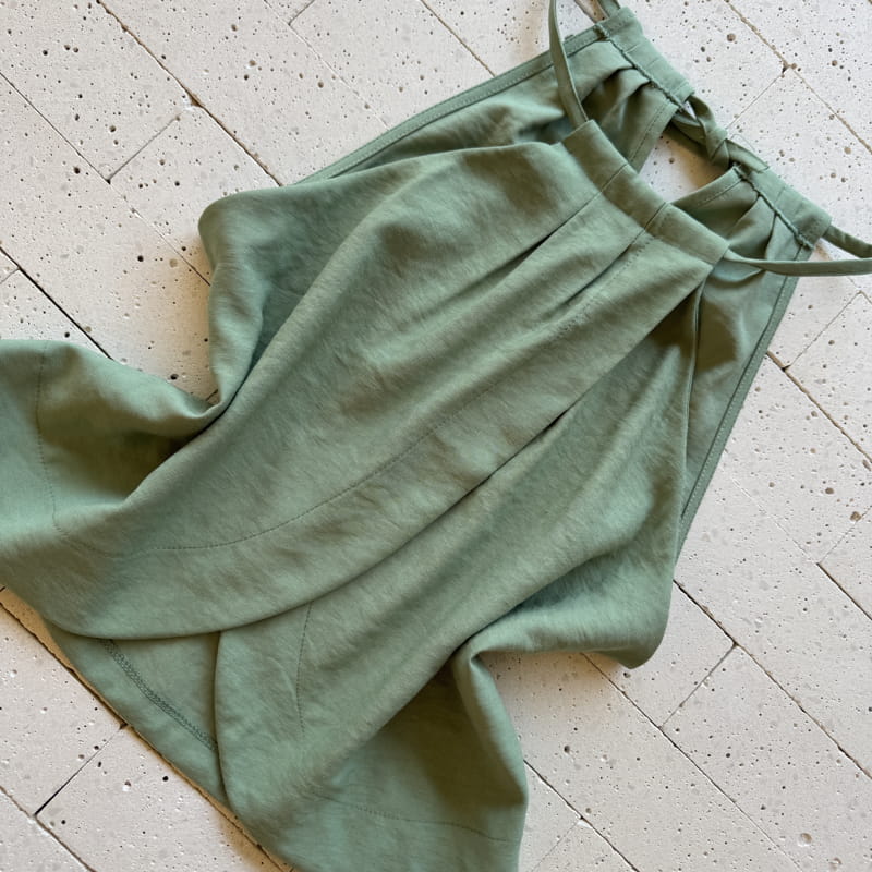 - Secar à sombra, em superfície plana para preservar o drapeado.