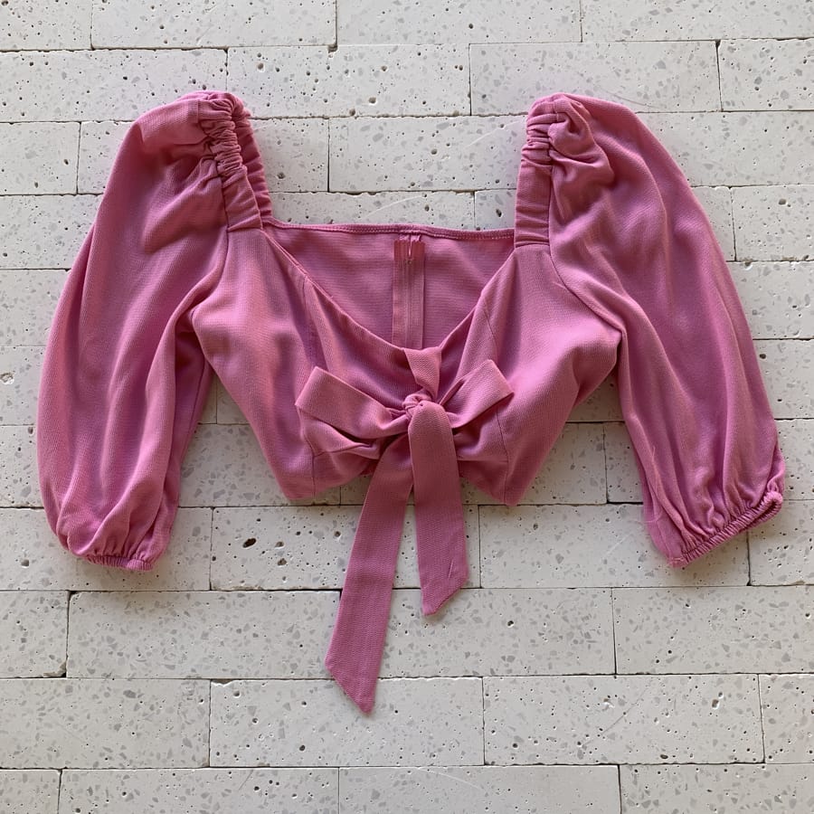 Como usar seu Cropped Manguinha com Elástico Detalhe Amarração Rosa