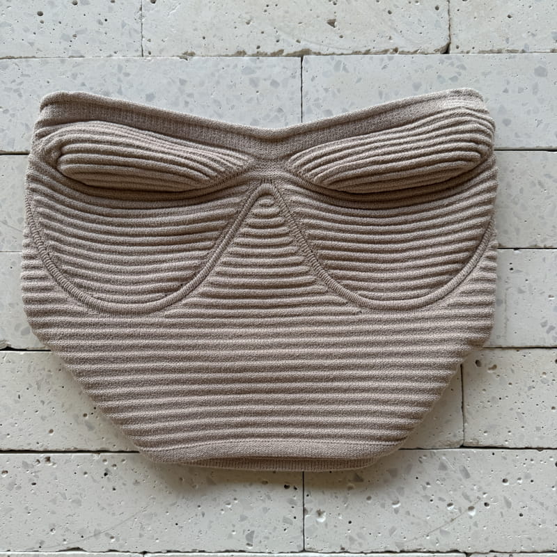 Escolha seu Cropped Modal Canelado Tomara Que Caia Bege com nosso PROVADOR VIRTUAL
