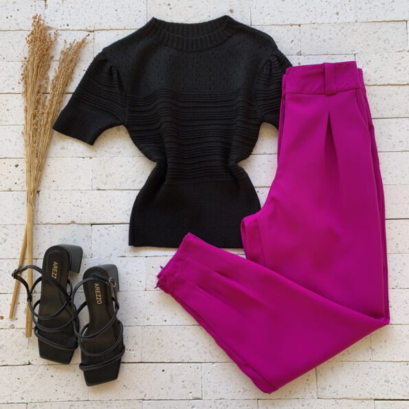 Escolha seu Cropped Modal Detalhe Nervuras e Ponto Vazado Preto com nosso PROVADOR VIRTUAL