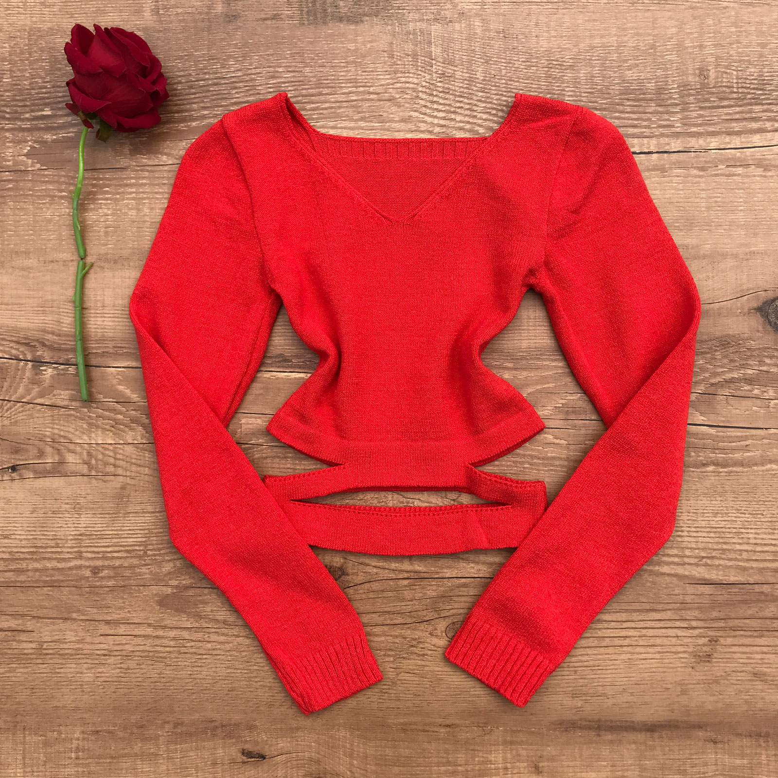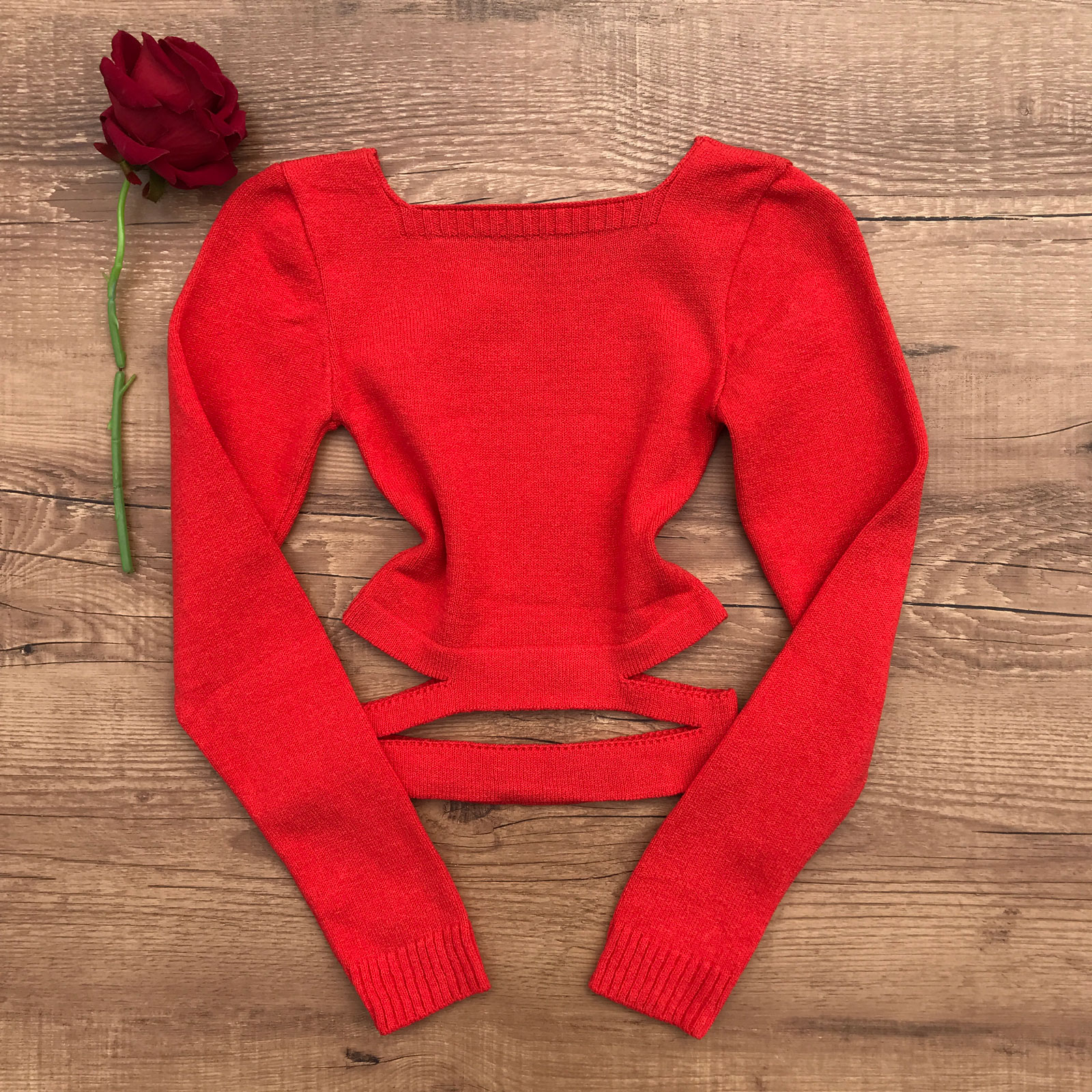 CROPPED MODAL MANGA LONGA DETALHE NA CINTURA ABÓBORA